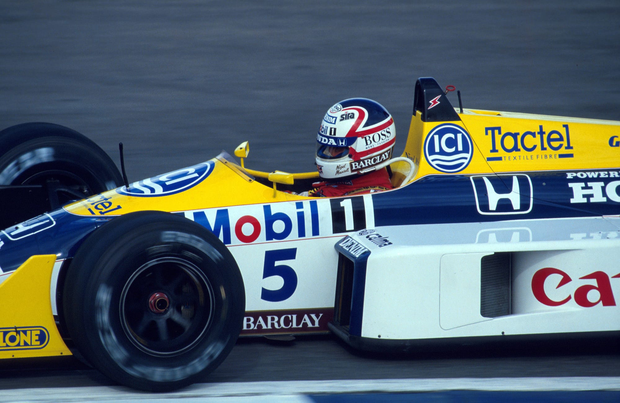 The Williams FW11B, the turbo car [for 1987]. Fantastic. Wheelspin in sixth gear 170mph, upwards of 1500bhp in qualifying, a car that wanted to kill you on every corner. It was marvellous.