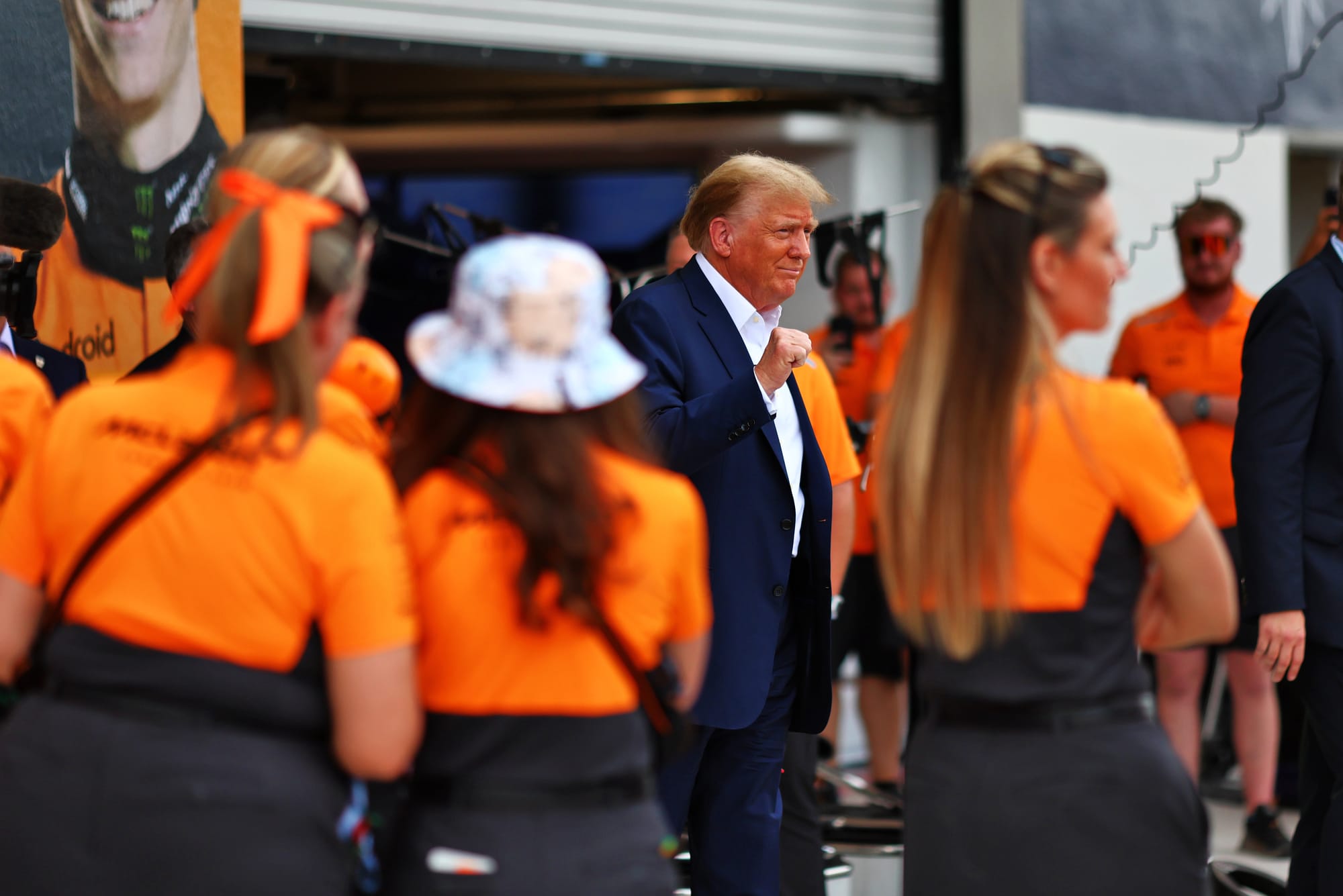 As part of the visit, Trump appeared in the McLaren garage with McLaren Racing CEO Zak Brown, alongside FIA president Mohammed Ben Sulayem, F1 CEO Stefano Domenicali and Liberty Media CEO Greg Maffei.