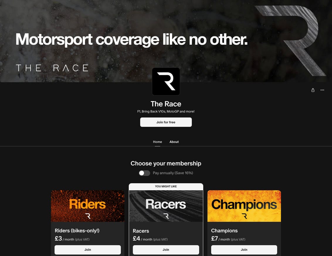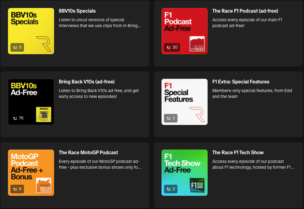 We’re also adding a new higher tier - Champions - with additional benefits including Live Q&As plus more Bring Back V10s bonus material. Our Racers tier will effectively be the same as the existing Members’ Club that is available through our website, with little added benefits like a WhatsApp-style community group that’s available through Patreon.