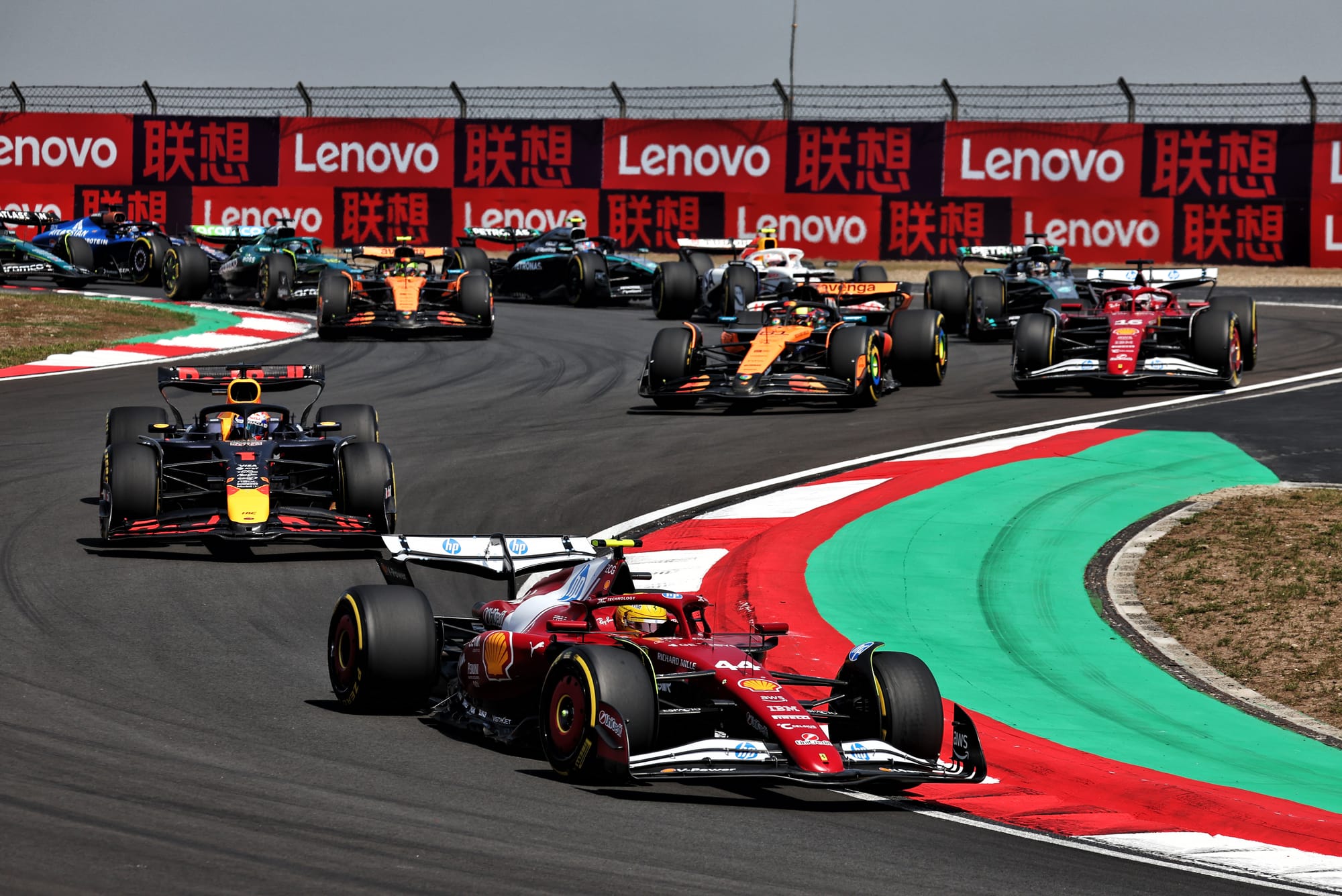 Hamilton had to withstand some pressure from Max Verstappen mid-sprint but the benefit of clean air, combined with the Ferrari appearing to be less prone to graining of the front left than its rivals, meant Hamilton’s pace held on much better than those chasing.