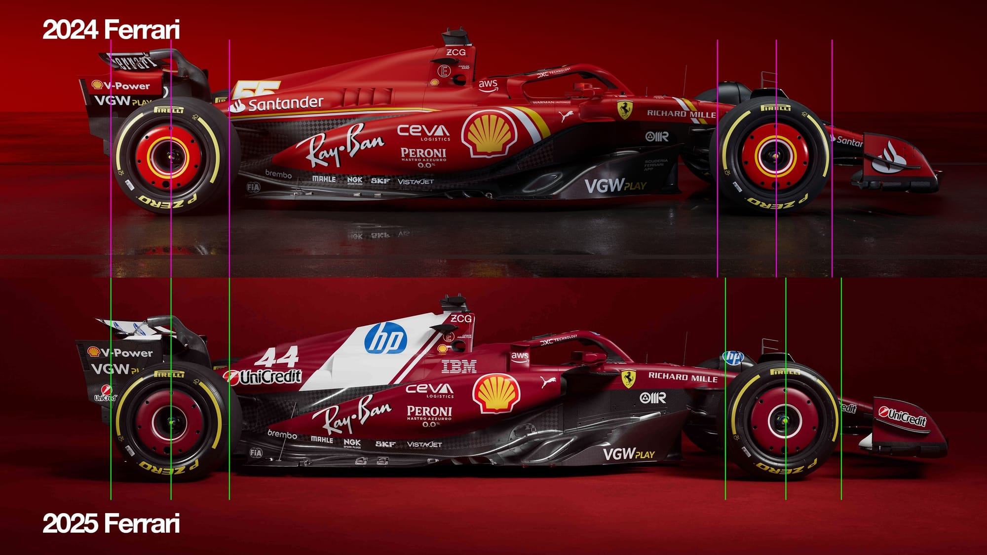 It looks like Ferrari has slightly lengthened the wheelbase by moving the front wheels forward.