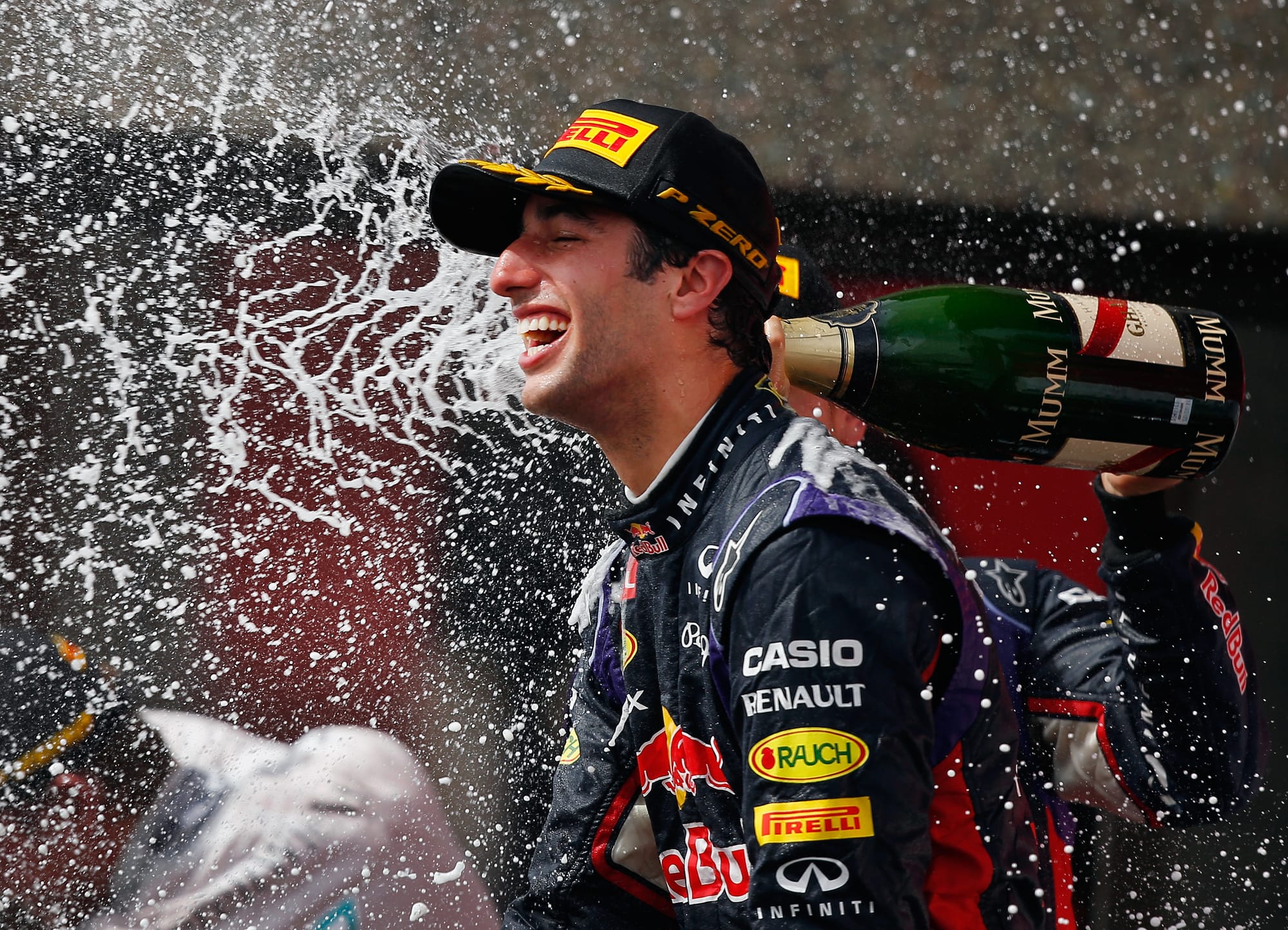 With Hamilton out and Nico Rosberg hobbled by the loss of MGU-K power, it was Red Bull newcomer Ricciardo who came through to win.