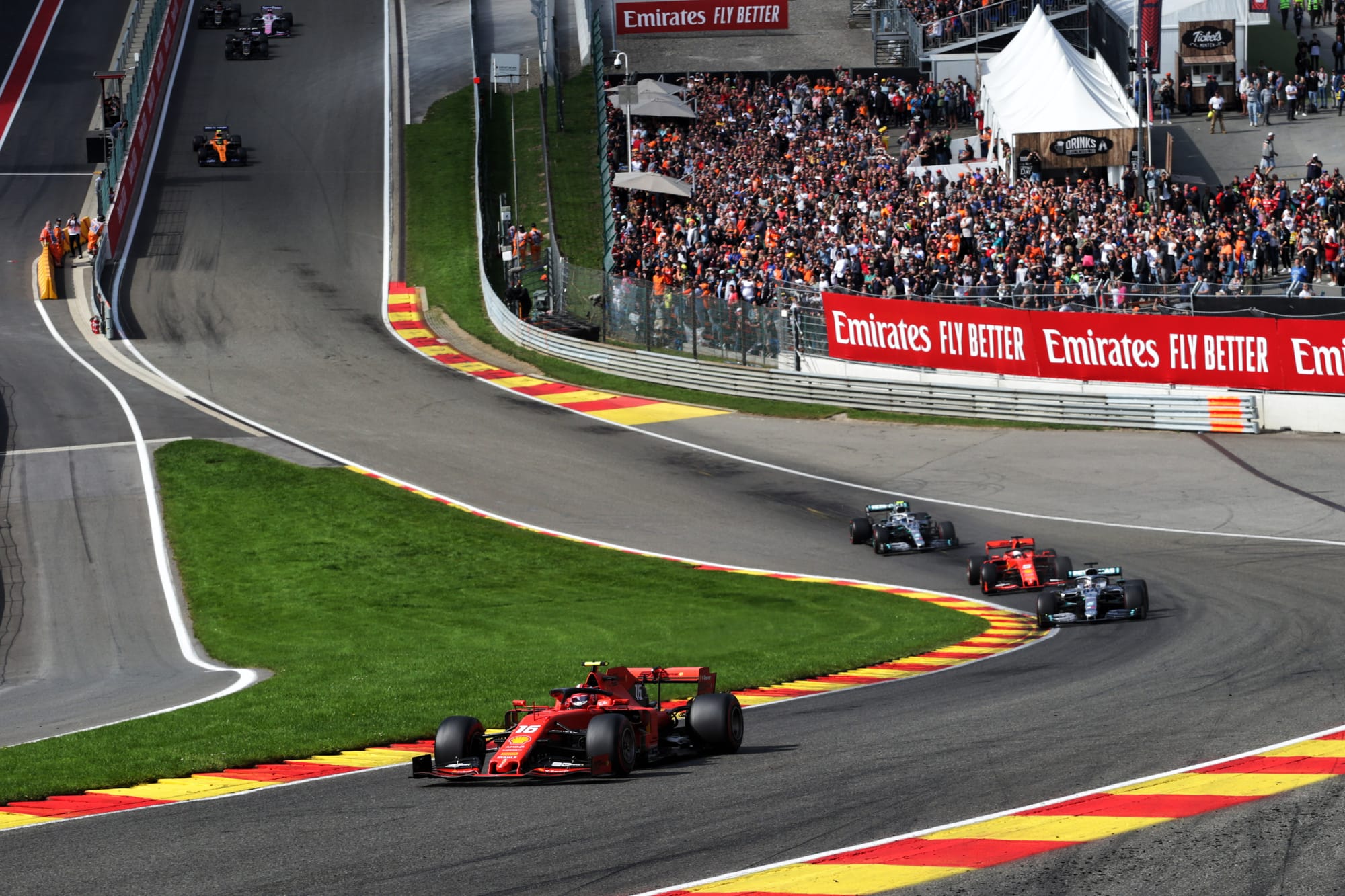 Things got a little more difficult in the race with Hamilton showing strong speed in the Mercedes, but Leclerc survived a brief off at Les Combes and resisted all pressure from behind.