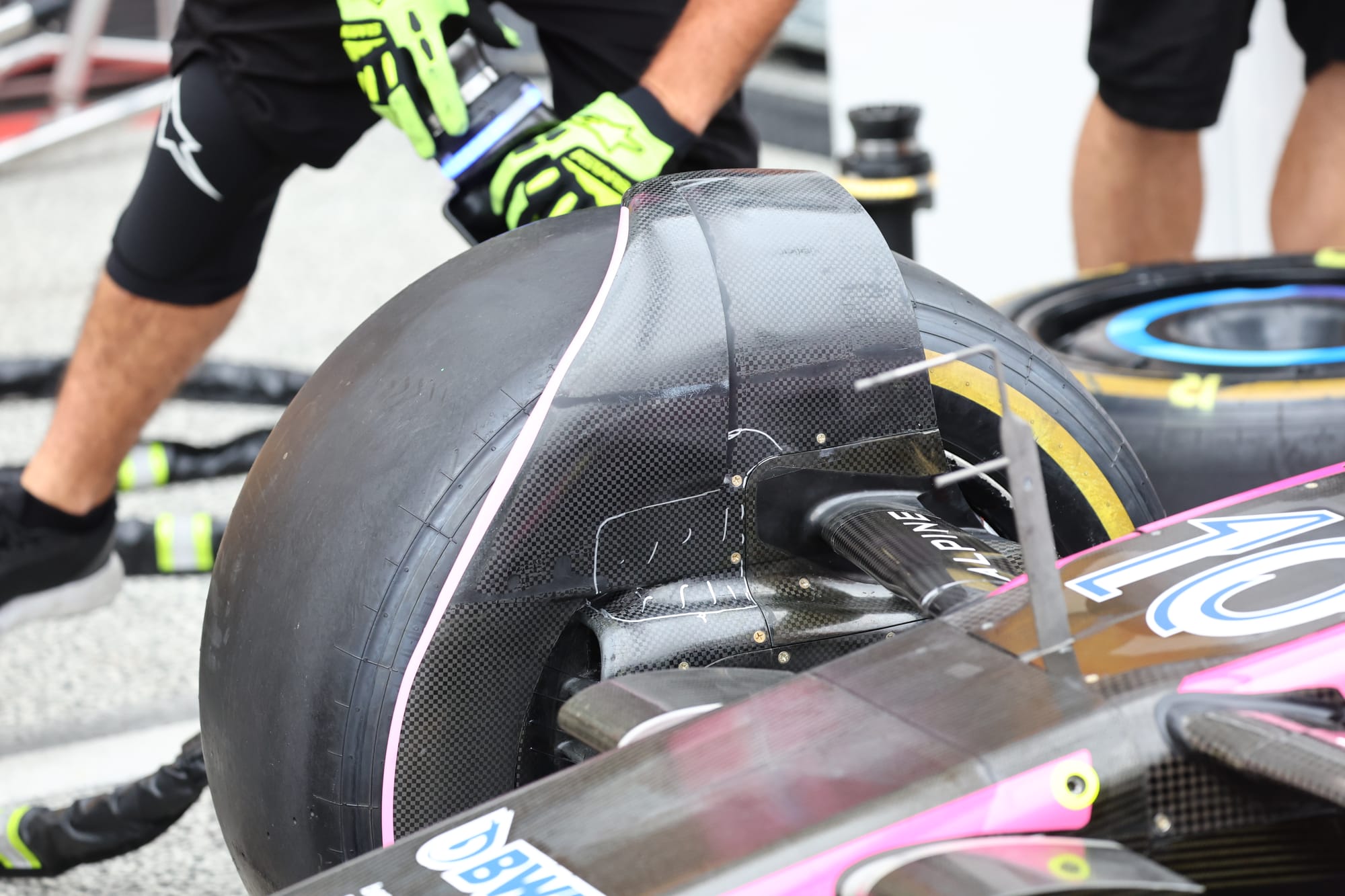 Alpine has new aero sheathing for the front suspension to improve airflow downstream. Higher downforce winglets for rear brake ducts for the specific demands of this track.