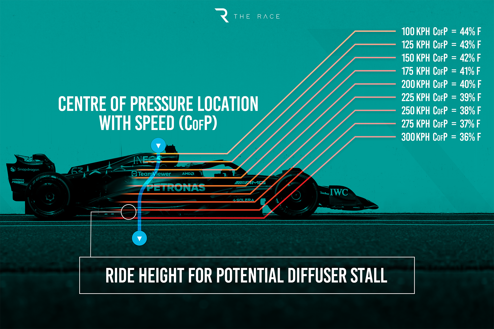 What we need to remember is that 60% will increase as the speed builds up and the underfloor gets nearer to the track surface. As we have seen, the teams spend a huge amount of their development time trying to bridge that gap one way or another.