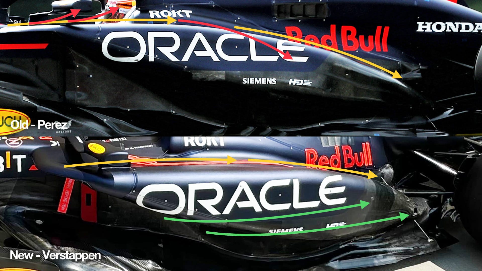 The bodywork is running only on Verstappen’s car, with team-mate Sergio Perez running the old-specification (but using the rest of the upgrade).