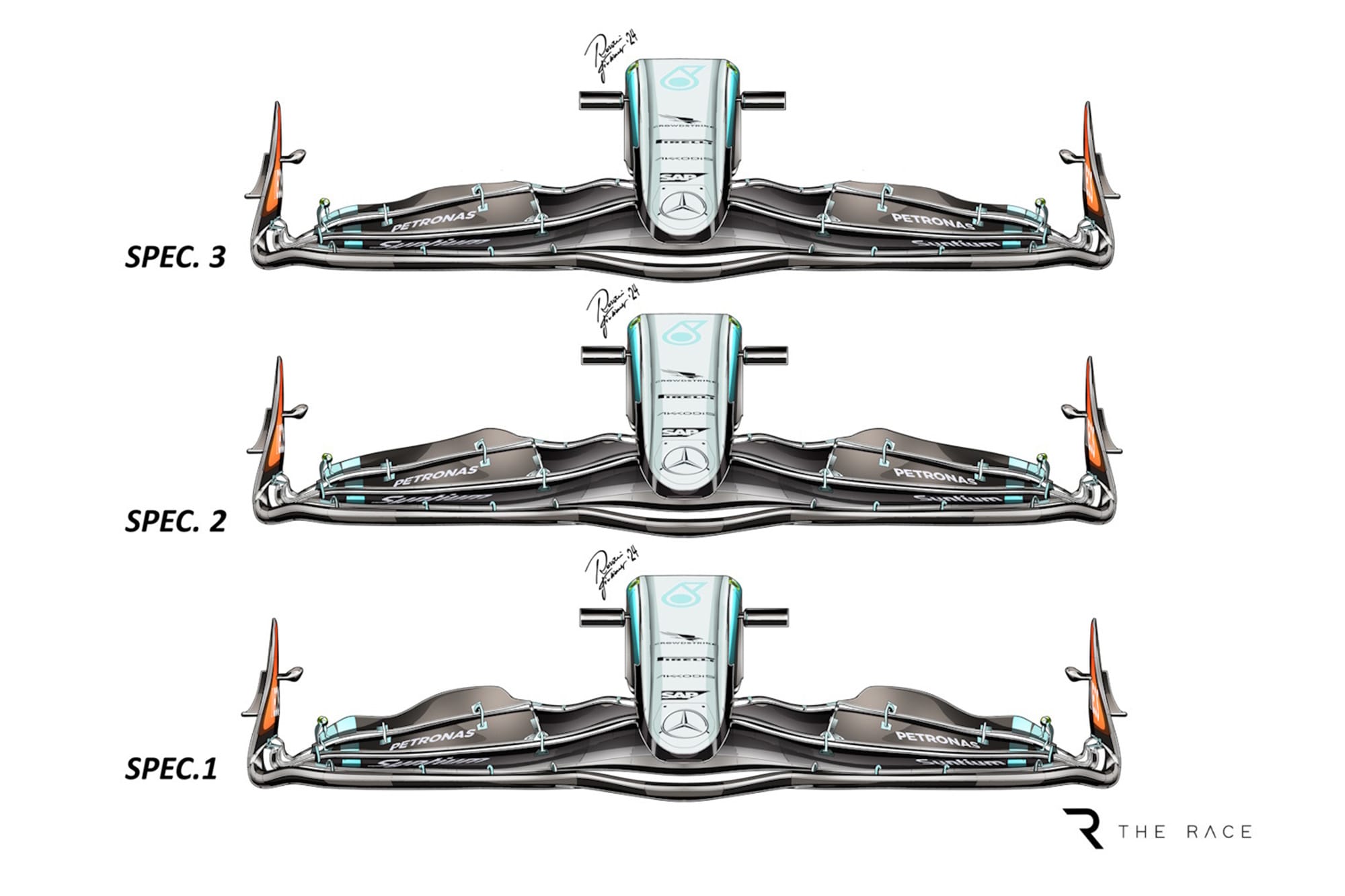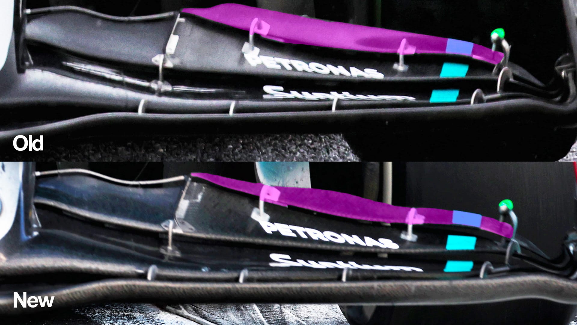 Aspects of what Mercedes changed on the front wing - which was one of the two main areas affected by the upgrade - will be circuit specific, designed to achieve the aerodynamic balance required to match the rear wing downforce and drag levels that were chosen. But I can also comment on what this says about Mercedes’ design trend.