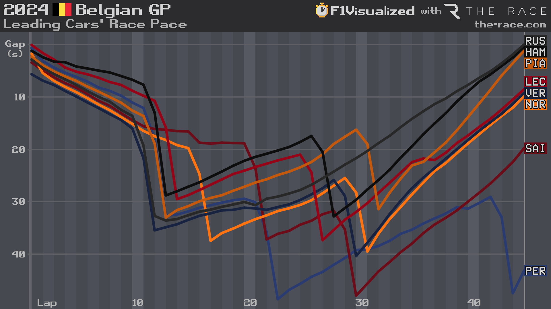 The second one is that this was not necessarily a tyre-limited race, which is what made the one-stop possible in the first place, so it didn't test Russell's stint management to the fullest. Although to counter that, it is not like there was no deg and it is not like there was no overtaking. It was hardly Monaco.