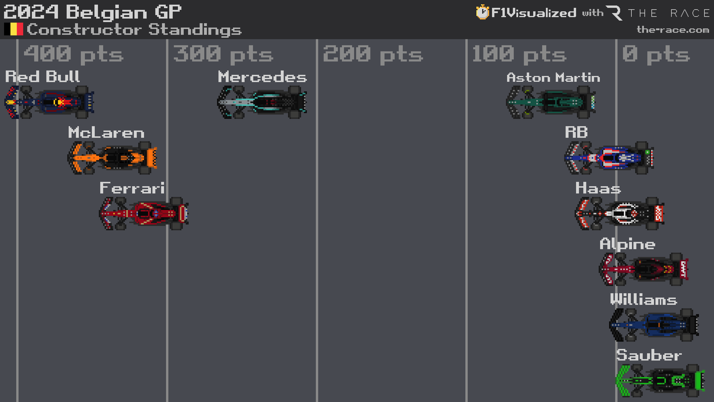 RB was nipping at the heels of Aston Martin before its Spanish GP upgrade threw it somewhat off course. It still has been a regular points scorer but it has had its advantage eroded by Haas to just seven points.