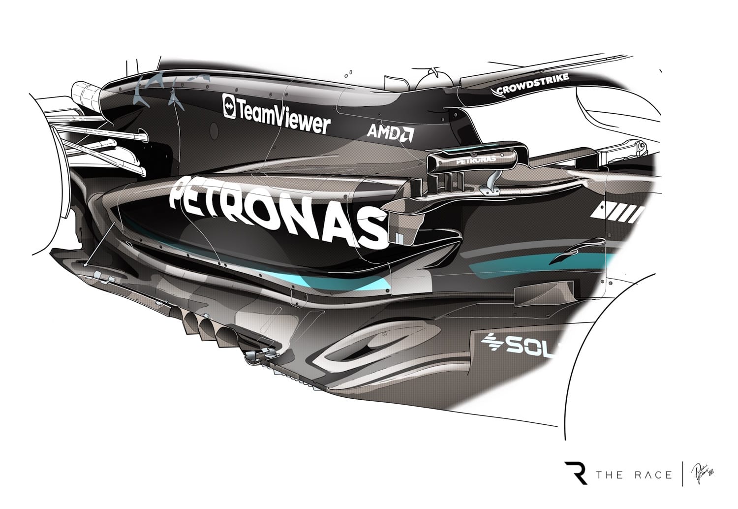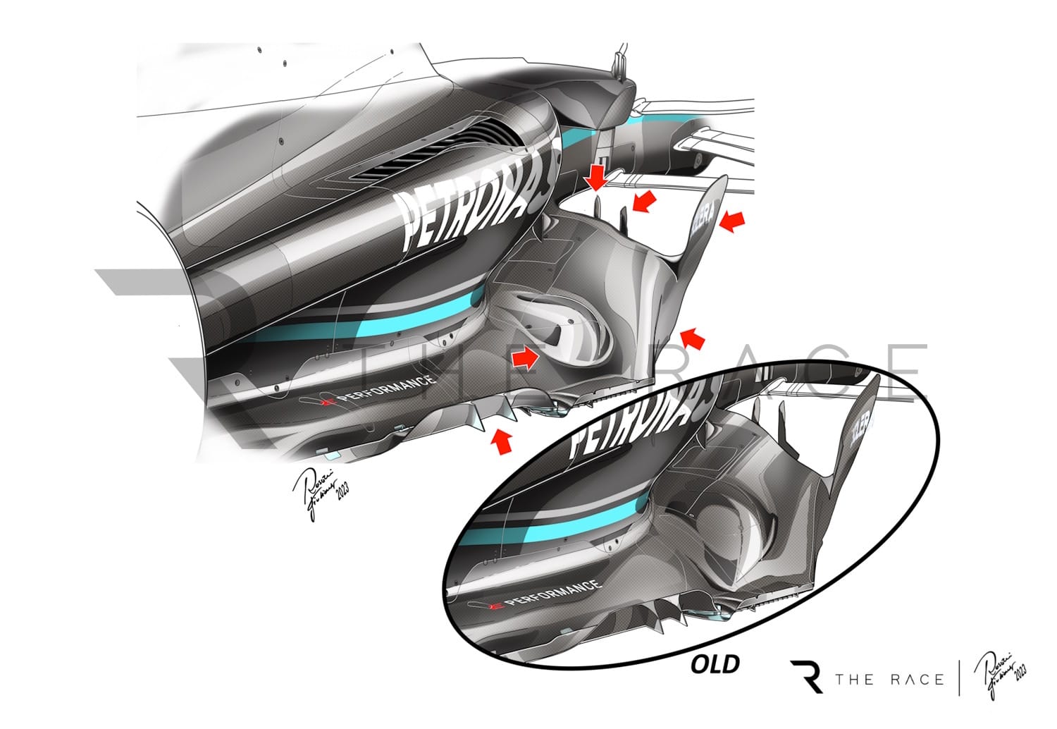 “The conceptual change was all about undoing the conservative decision about ride heights. It’s nevertheless true that along the way, as we sought to find downforce in a different part of the ride height map, you get different geometry under the car as a result.”