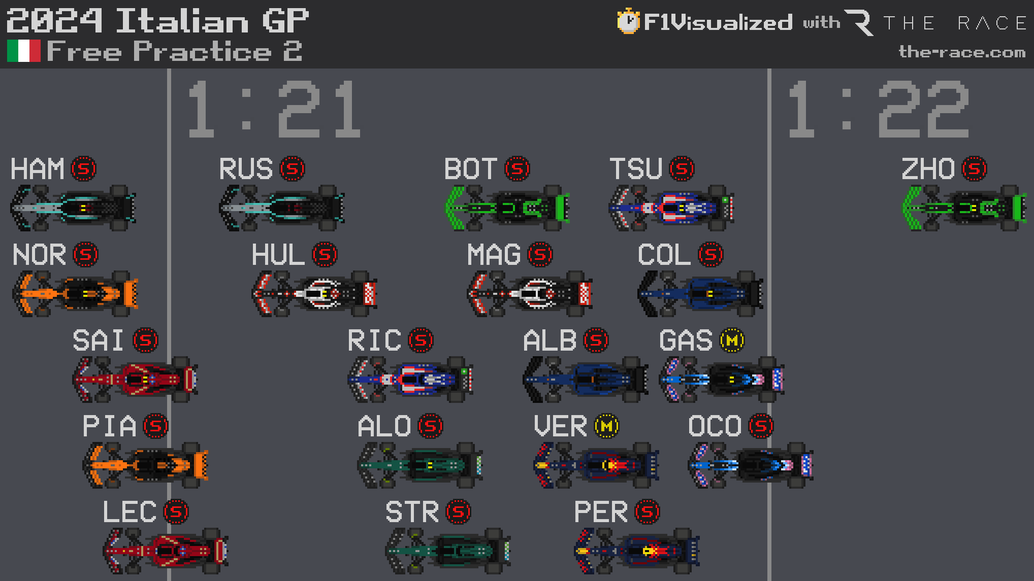 15. Tsunoda 1m21.735s