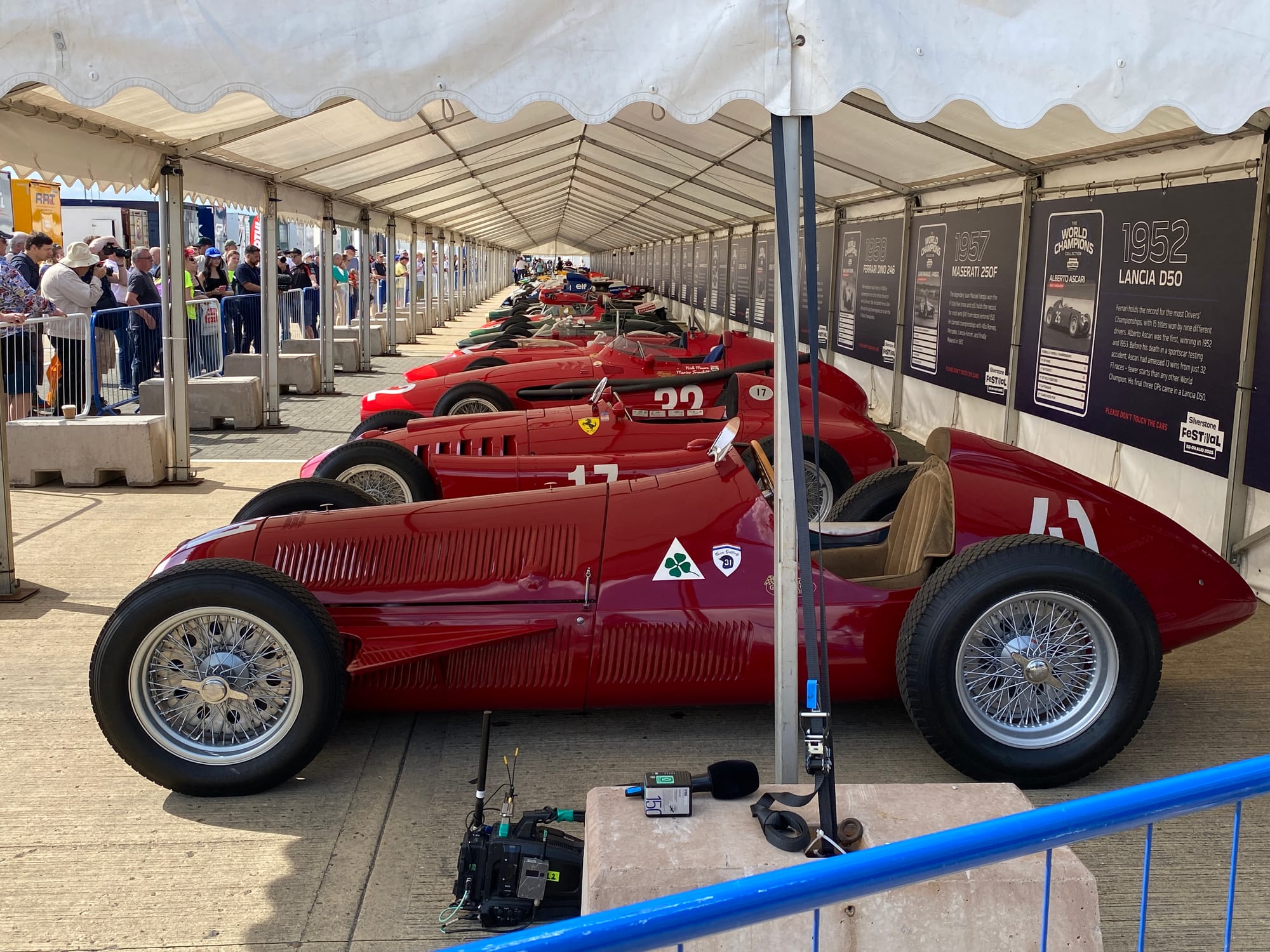 “We did a measurement of the cars and the Alfa [Romeo 158, of 1950] is three paces long, whereas the Red Bull [RB18 of 2022], is five-and-a-half. The Red Bull only just fits under the marquee, whereas there’s plenty of space around the Alfa.”