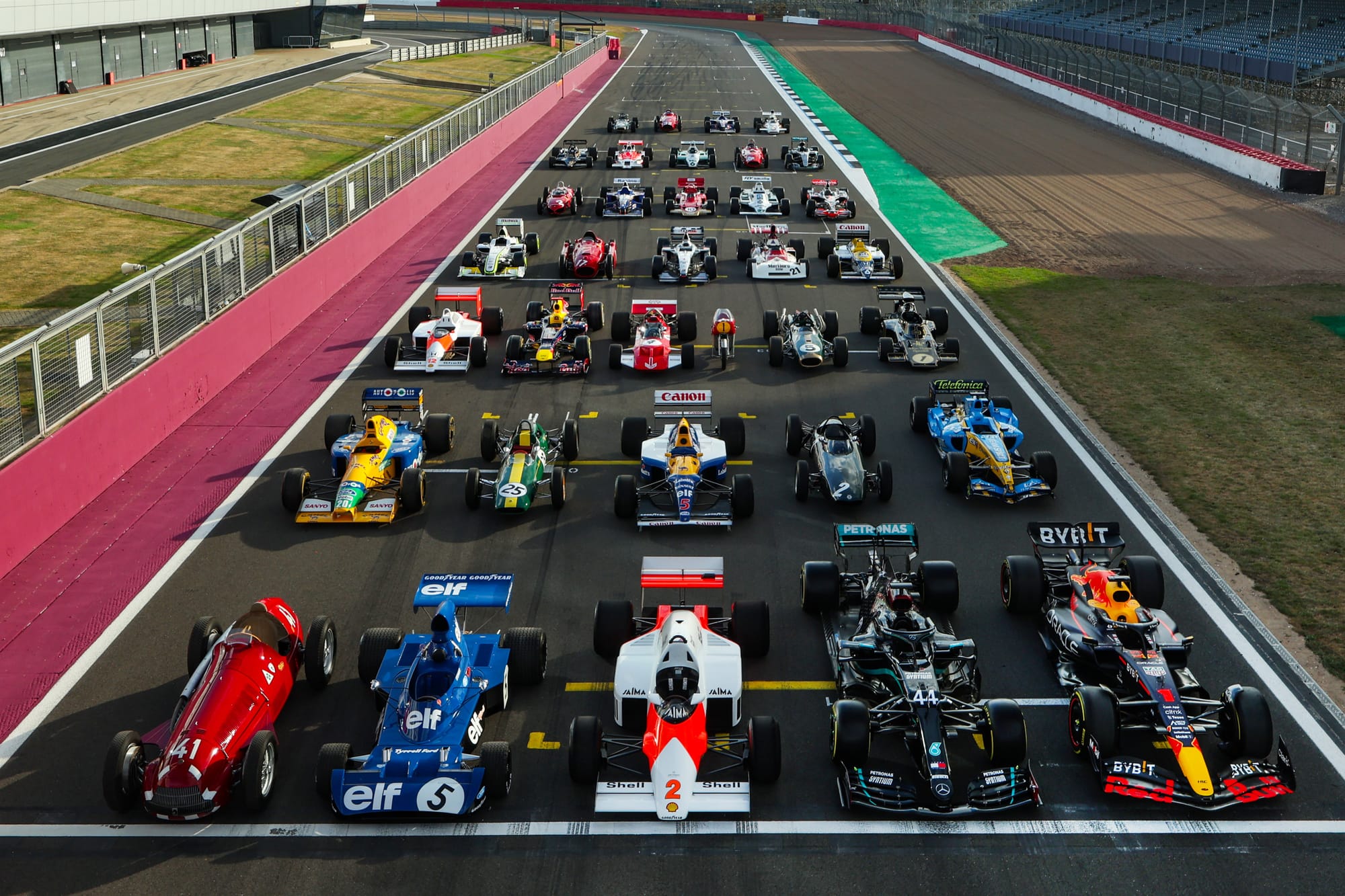 One image captured this remarkable achievement, staged by Silverstone placing a car that represented each of the 10 British world champions on the start/finish straight.