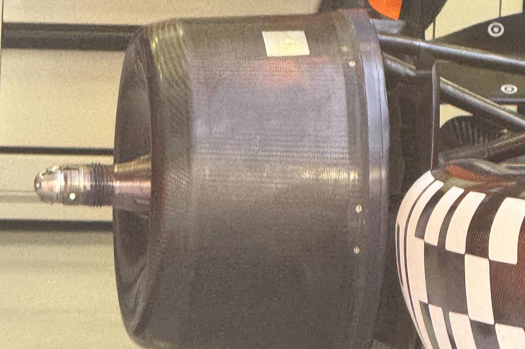 Utilising the hole to access a sensor during practice, the team seals it up with tape for the race.