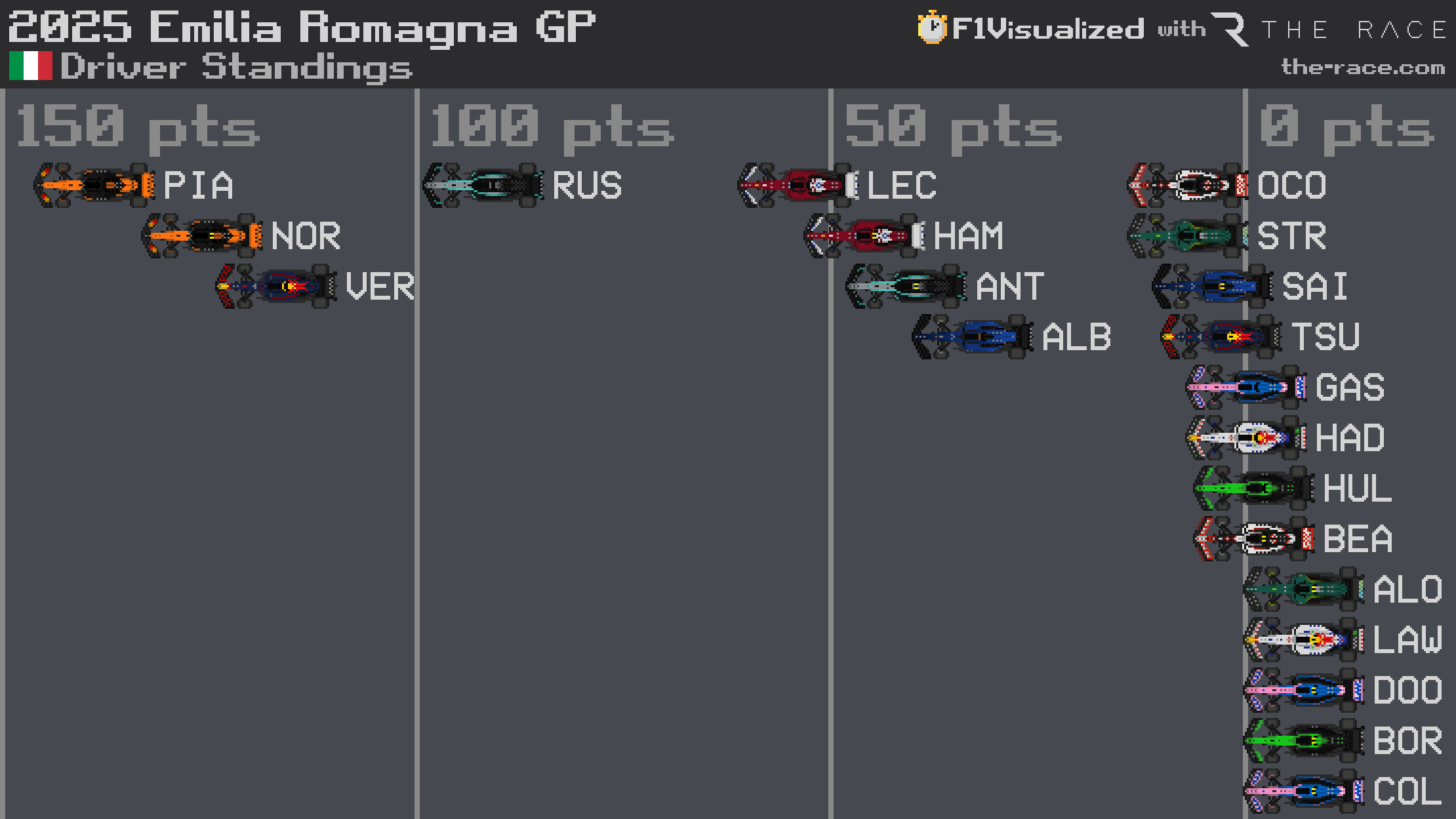 But Lady Luck did also intervene, and though it was Verstappen's day, on the team side we shouldn't forget that Red Bull came away from Imola with 26 points, McLaren with 33 points.