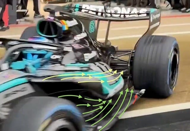 I have added some flow lines to this sidepod detail below to show what Mercedes is trying to achieve.