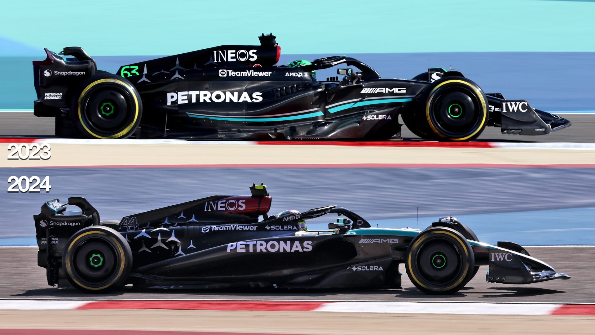 Mercedes made some major changes to the architecture of the car for 2024 with a revised monocoque, which included moving the cockpit rearwards by 10cm, and a revised rear suspension and gearbox. These were hard points in the design that needed to change to create more performance potential.