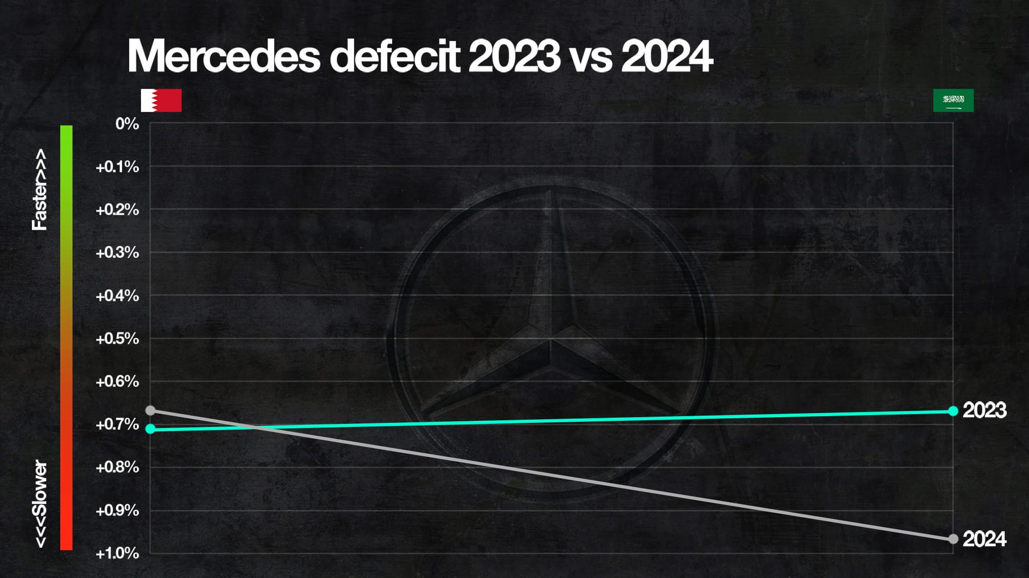 Thanks to these struggles, while Mercedes had been a little closer to the pace in qualifying in Bahrain this year versus last year, it was substantially worse off in Saudi Arabia.