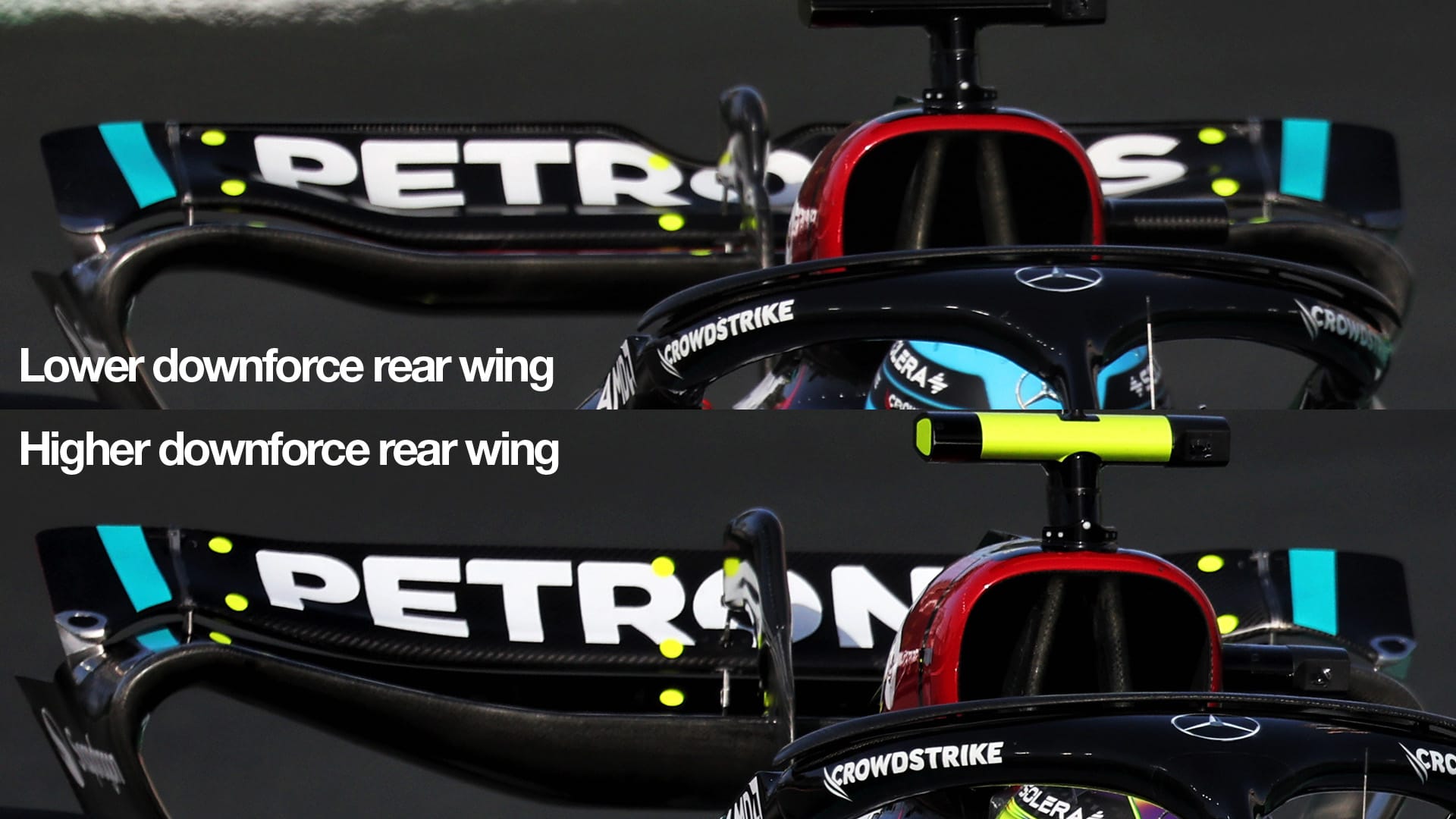 “There’s a bigger factor with the lack [of pace] in the high-speed [corners] than just the rear wing,” Mercedes boss Toto Wolff said.