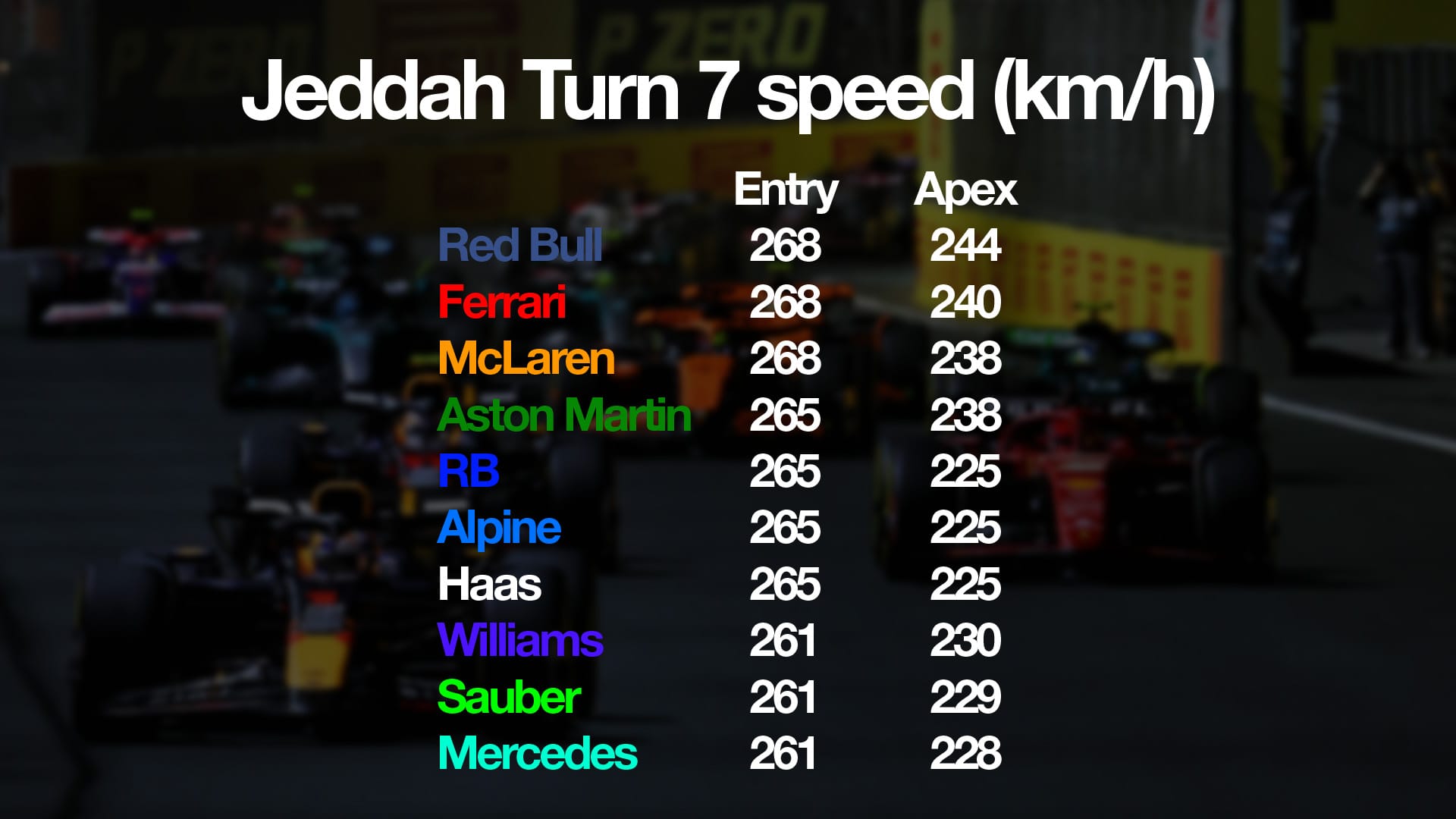 A glance at the performance of the cars through the high-speed sweeps of Turns 6 to 10 at Jeddah highlights the difficulty.