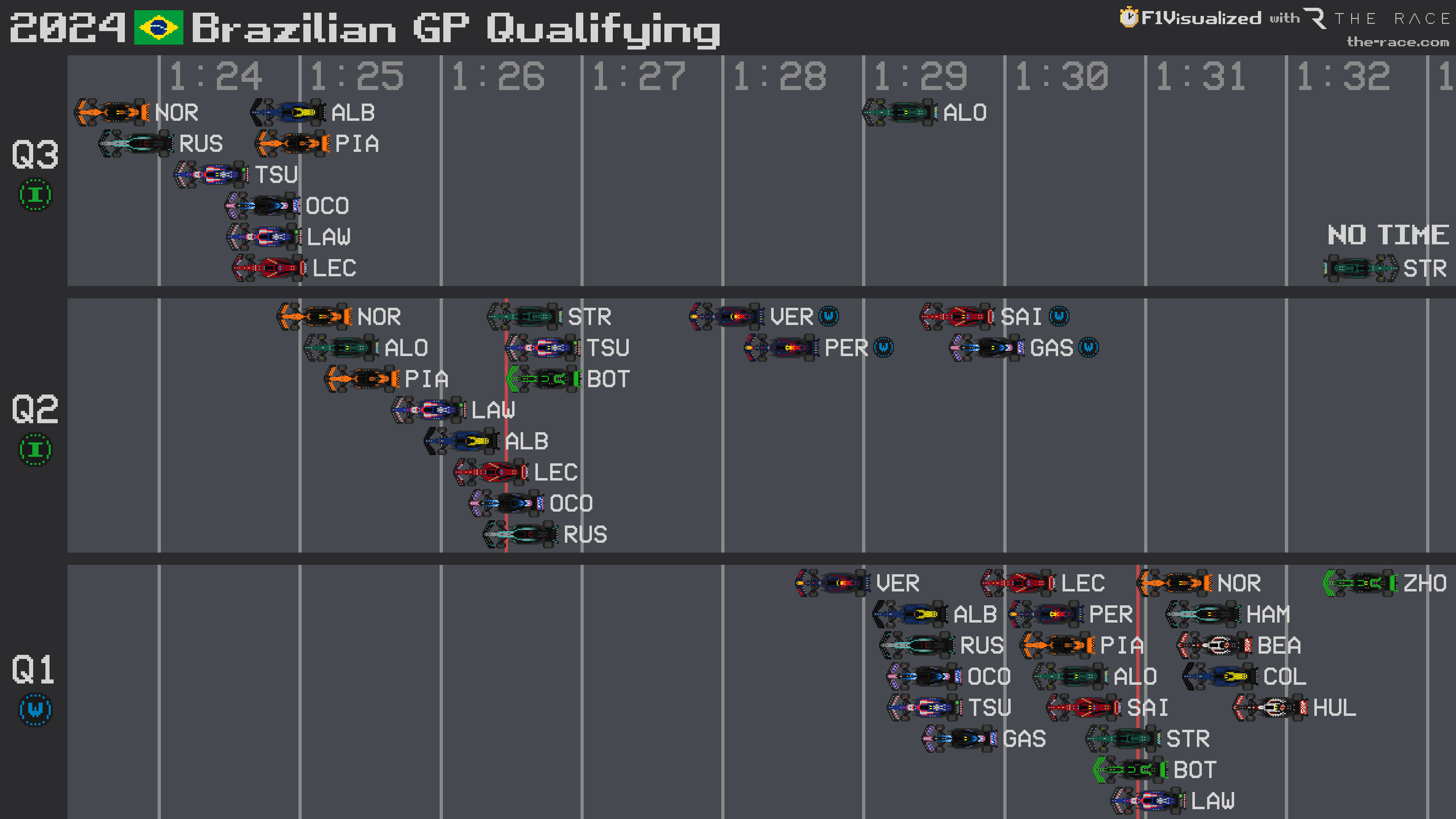 Once Albon's car was removed, Q3 resumed for a crunch set of laps in the final minutes with Norris coming out on top.