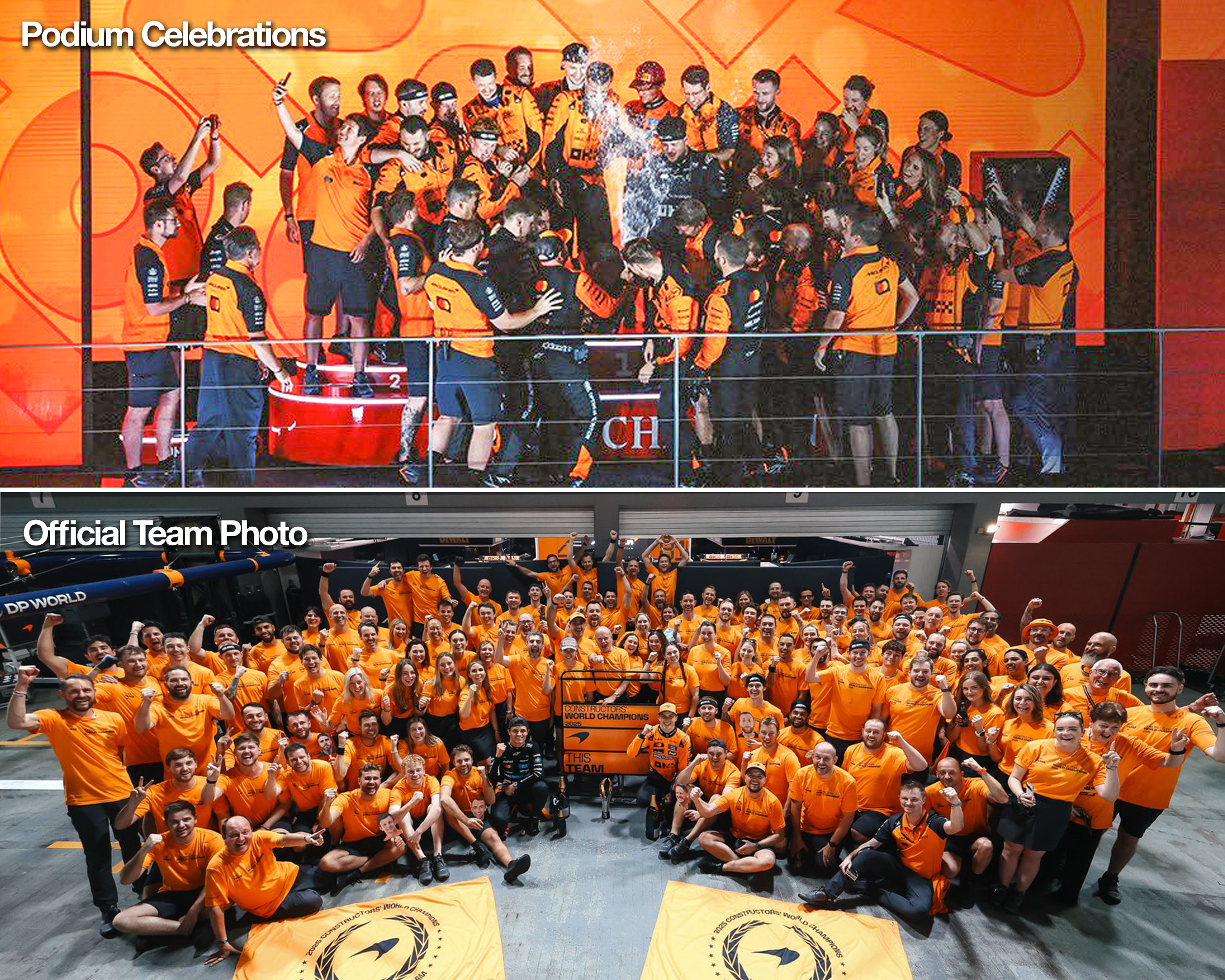 Immediately after the race, however, FOM made sure to make the most of McLaren’s feat by rolling into action some spur-of-the-moment celebrations.