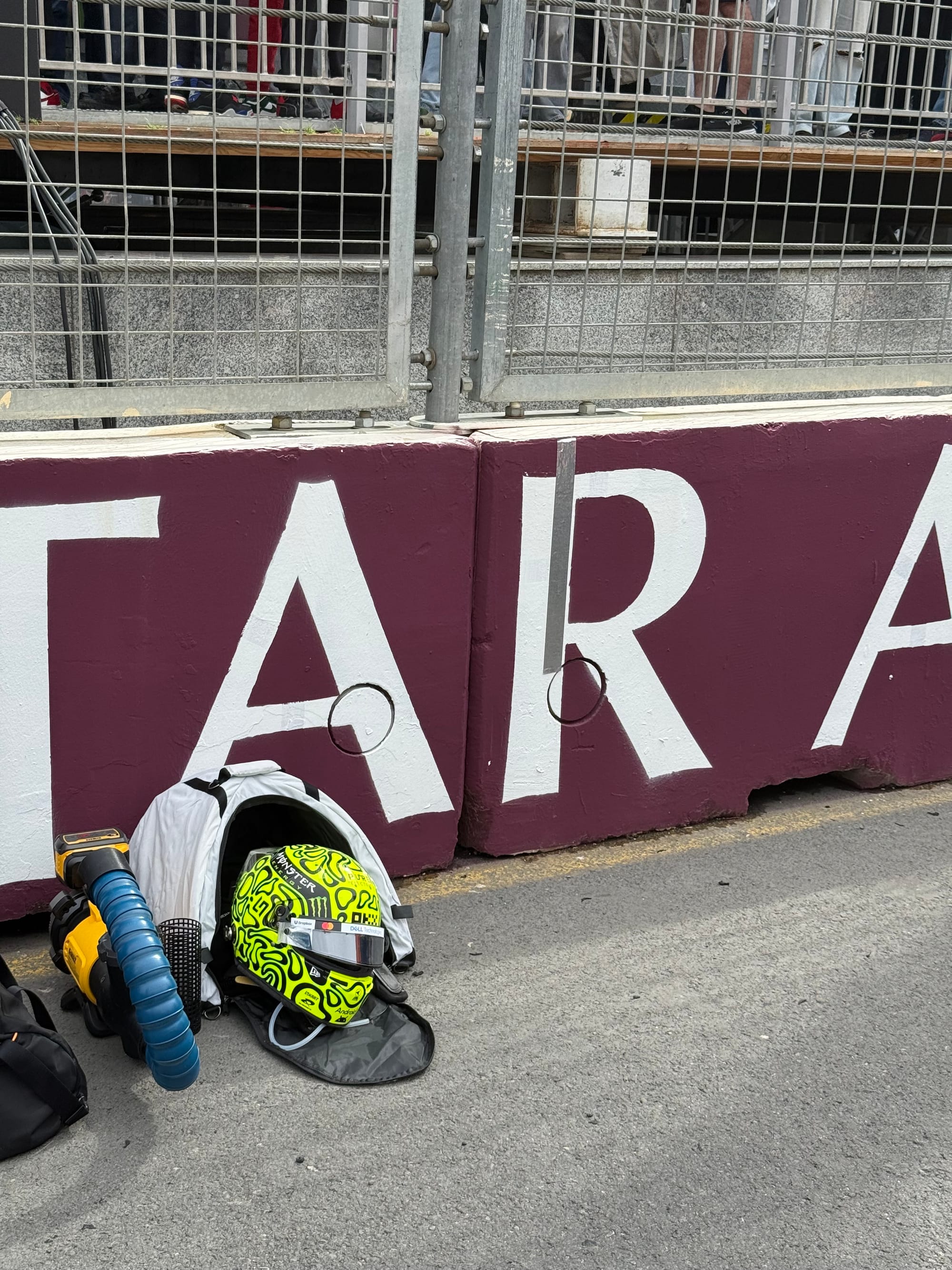 McLaren has long used a strip of tape on the wall nearest to Norris as a visual marker for him when lining up in his grid box.