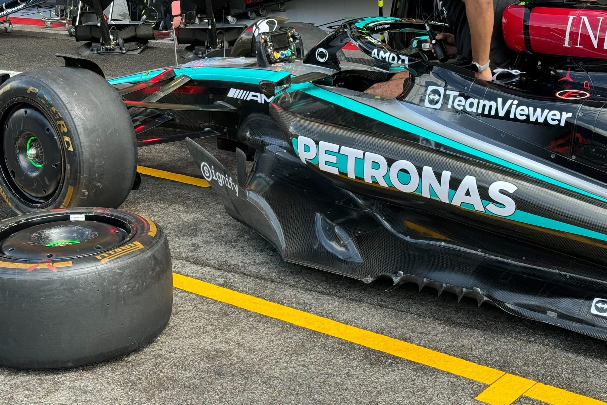 Mercedes opted to remove the floor and some accompanying bodywork to give itself a known baseline for the wet weather that was forecast for qualifying.