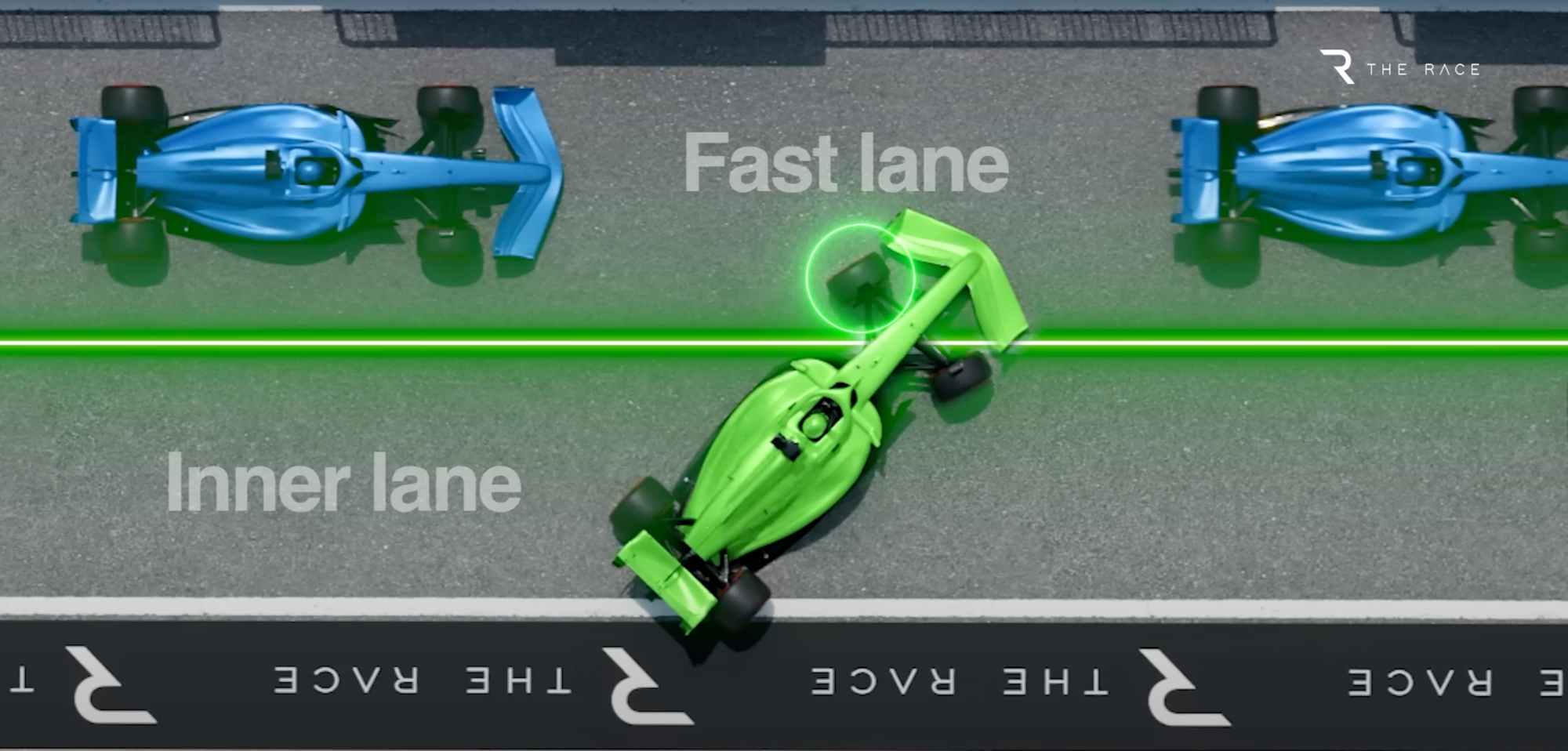 It only takes a few cars to go a bit early, and fill up the fast lane while waiting, for these teams’ exit routes to be blocked entirely – leaving them exposed to sitting there while the rest of the pack all sail past.