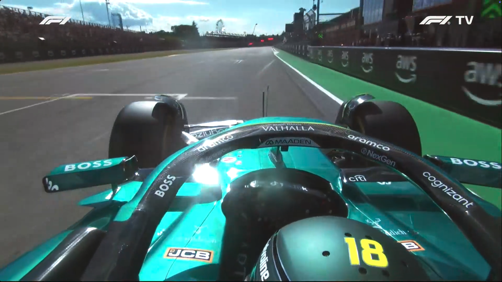 By point of comparison, Lance Stroll, the last driver to set a laptime before the red flag, doesn't have the orange abort lap lights above him when he crosses the line.