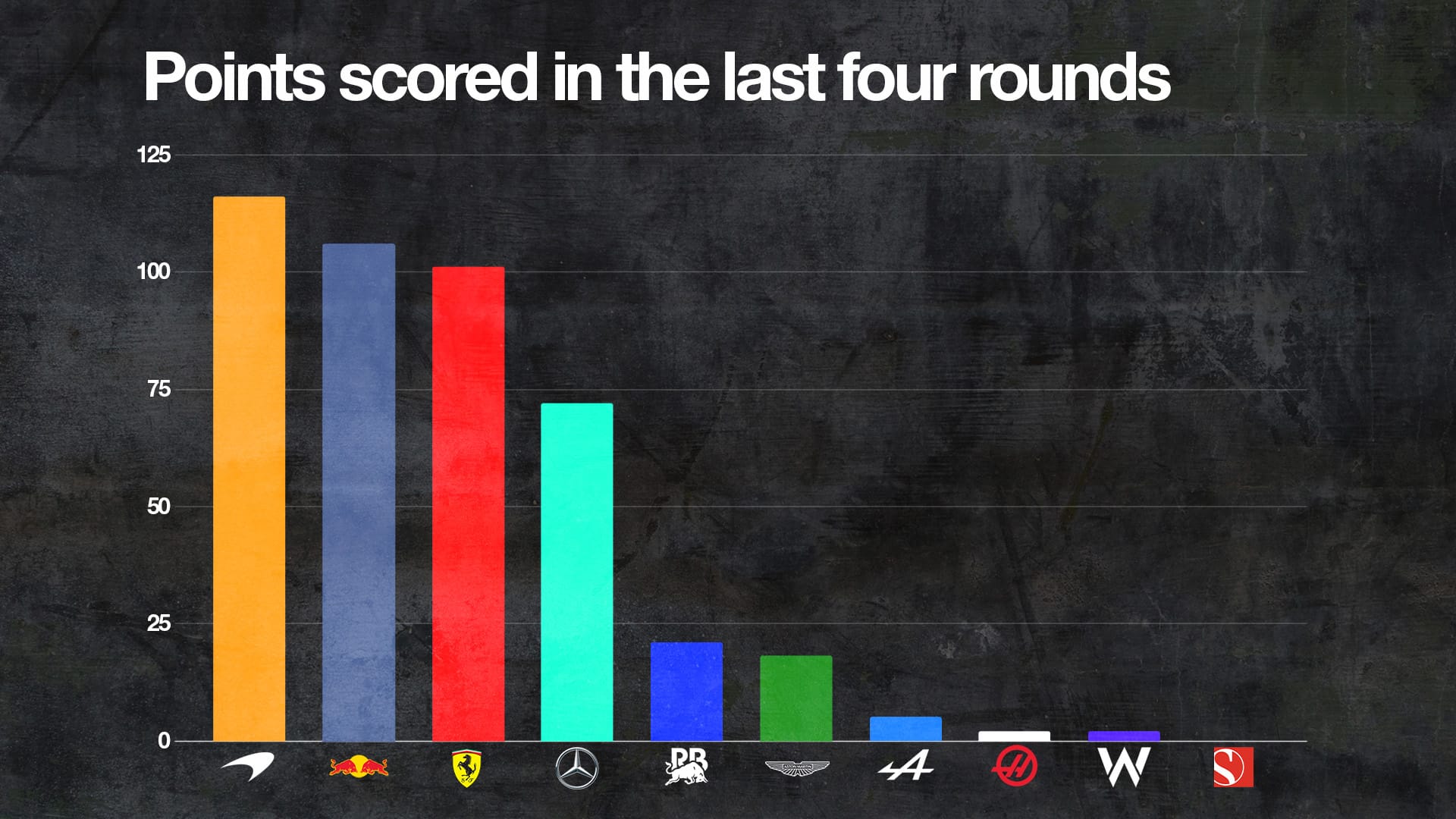 Norris followed that up by chasing down Max Verstappen to almost win the next race at Imola, Piastri finished on the podium in Monaco, and Norris could/should have won in Canada. Four races, four podiums, one win and a couple more near-misses – more points than any other team in that period, too.