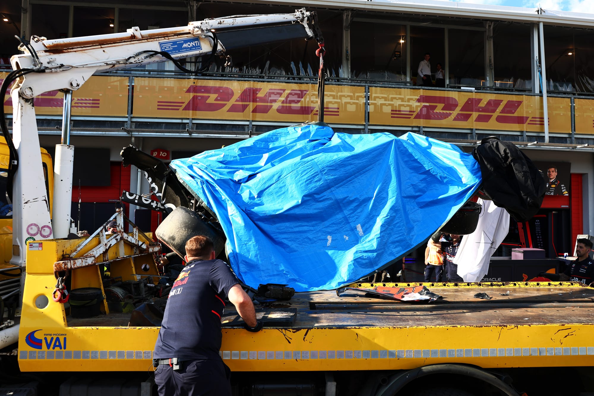 Then Tsunoda crashed heavily at the Villeneuve chicane on his first flying lap in Q1 at Imola, which led to his car being rebuilt around the spare monocoque, and several components used for the rebuild were of an older specification.