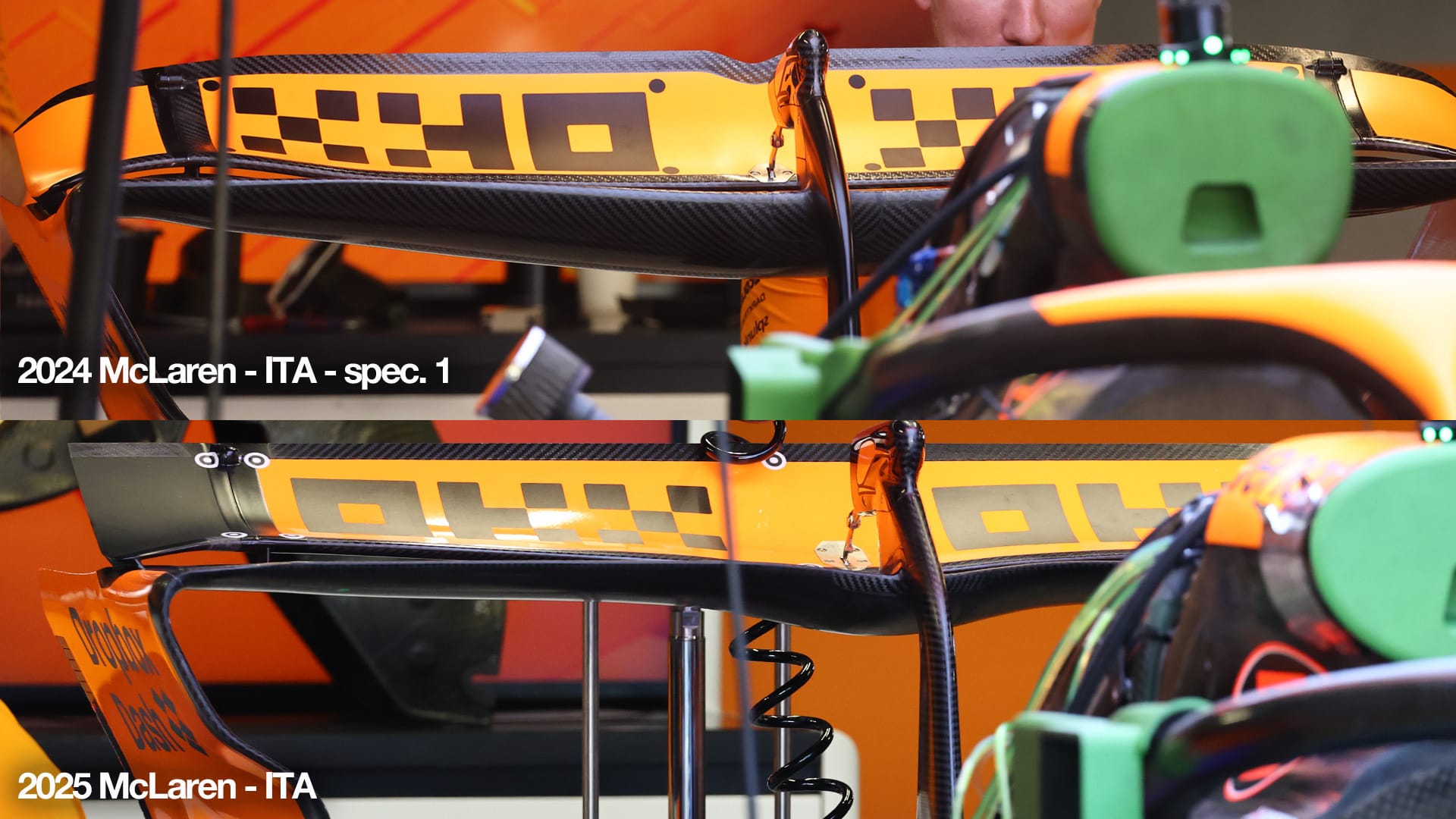 Formula 1 teams have offered a first glimpse of their super low downforce Monza wings – with McLaren one of the teams bucking the trend and changing approach compared to 12 months ago.