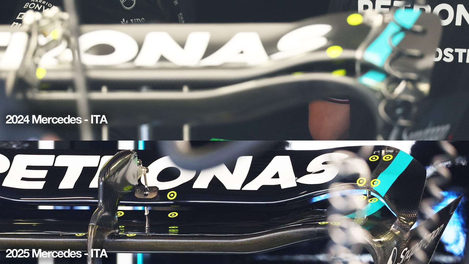 At Monza in 2024, it introduced a bold wavy upper element that looked unique, but did not perform well. Max Verstappen and Sergio Perez had been left at the bottom of the speed traps in qualifying.