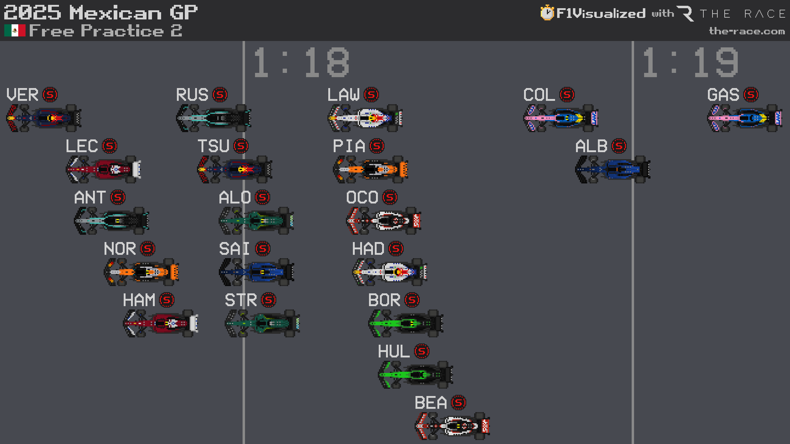Formula 1 title contender Max Verstappen laid down an ominous marker in second practice for the Mexican Grand Prix, a session that championship leader Oscar Piastri ended outside the top 10.