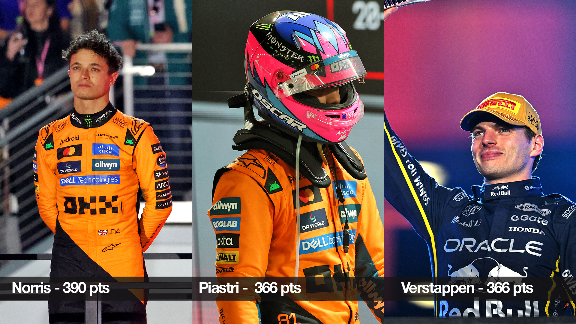 The points permutations after the McLaren disqualification are clear: Verstappen is only 24 points adrift now, having more than halved Norris's advantage on Saturday night.