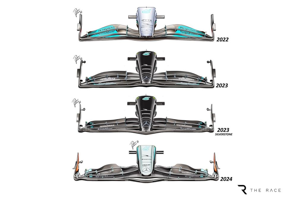 There's a deeper but marginally narrower sidepod radiator inlet, an increase in the inboard mounting width of the top front wishbone and fewer turning vanes on the floor edge, but no major departures from what we've seen elsewhere on the 2024 grid.