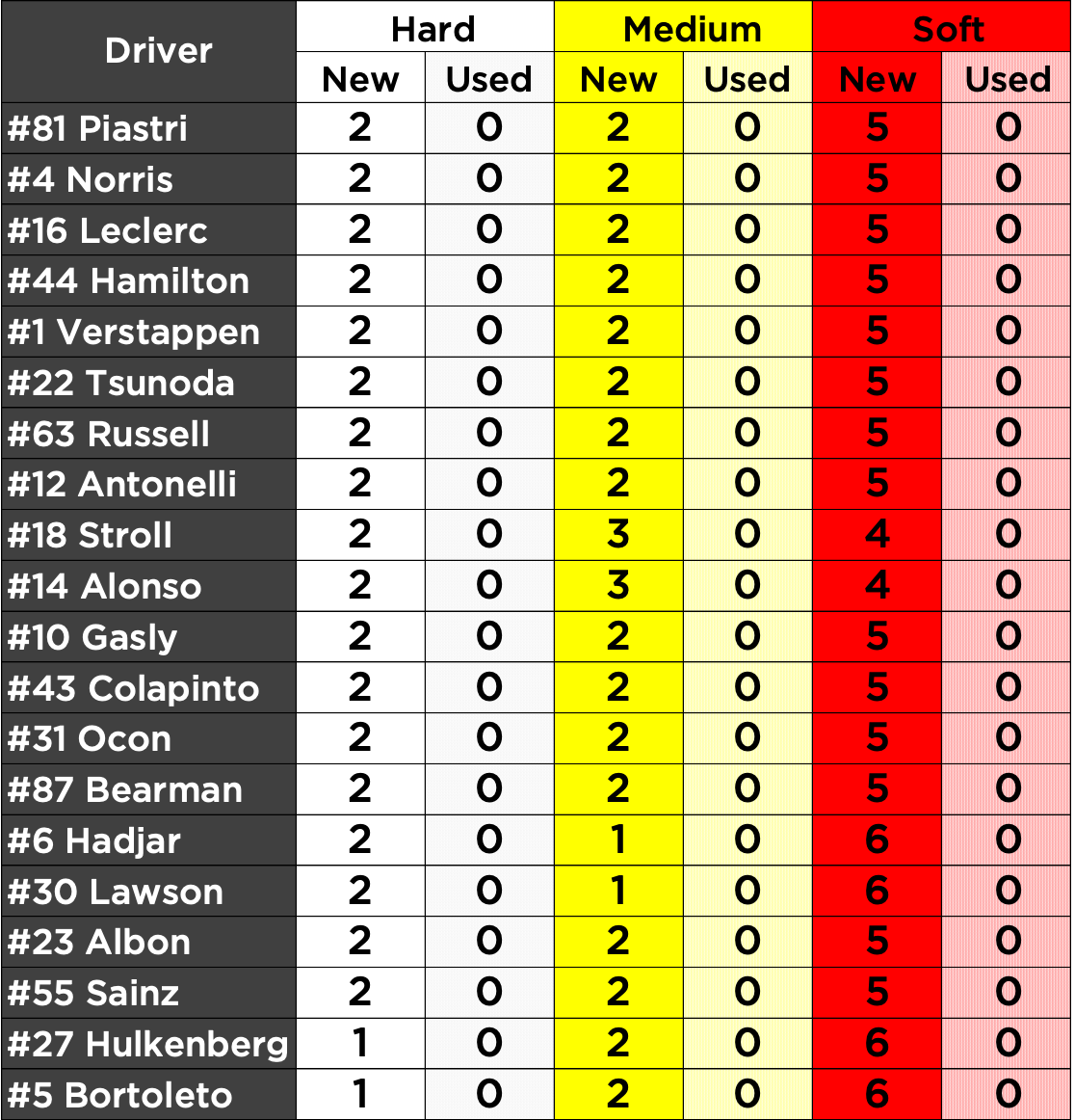 Based on the number of sets available after second free practice, teams are clearly locking themselves in to preserve mediums and hards.