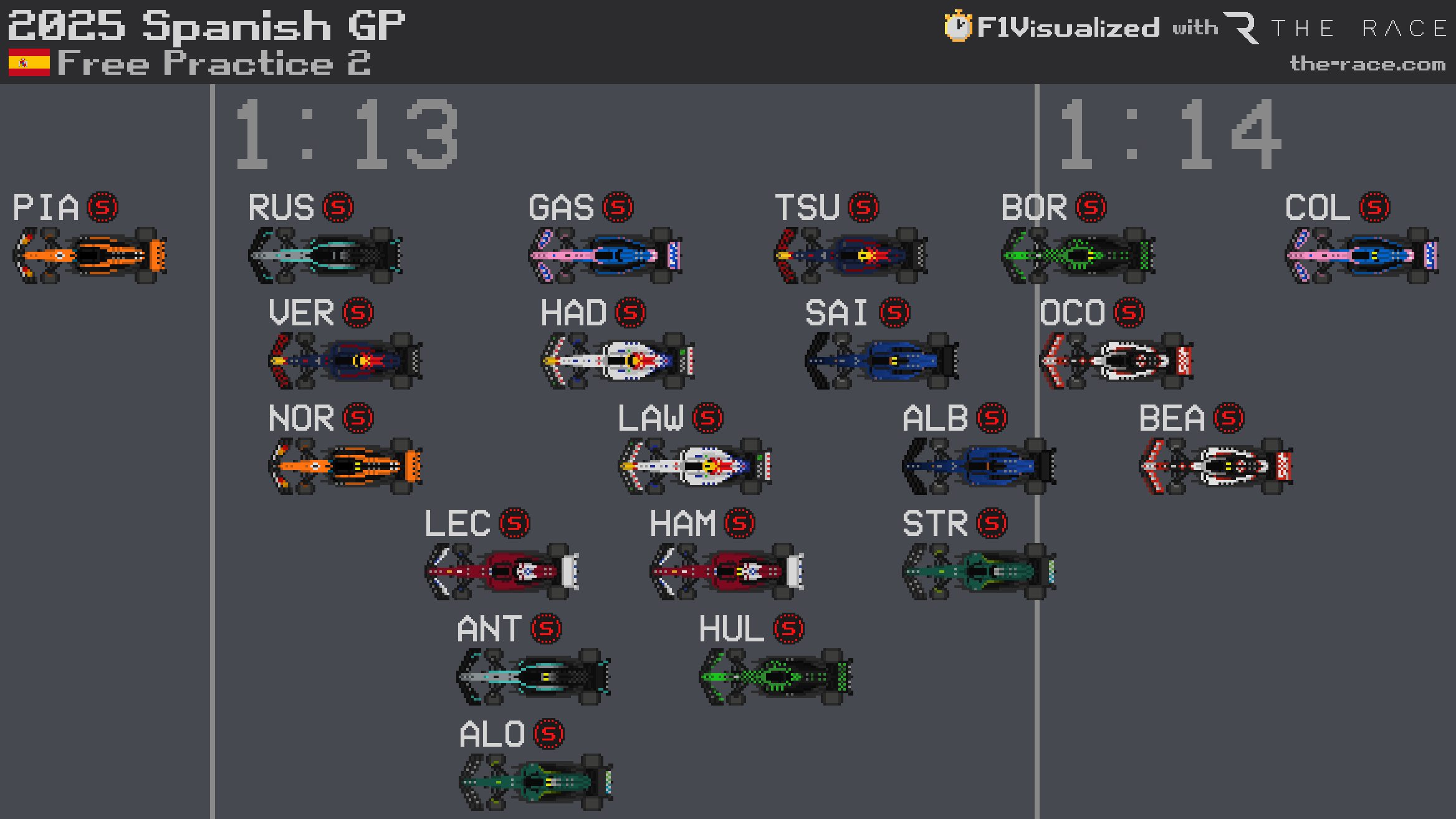 In Barcelona FP2, compared to midfield leader Fernando Alonso's Aston Martin, Sainz was slower everywhere except Turn 1 and the exit of Turn 10, with a particularly big loss of more than two tenths of a second through the very long Turn 4 right-hander, and a similar margin through Turn 12.