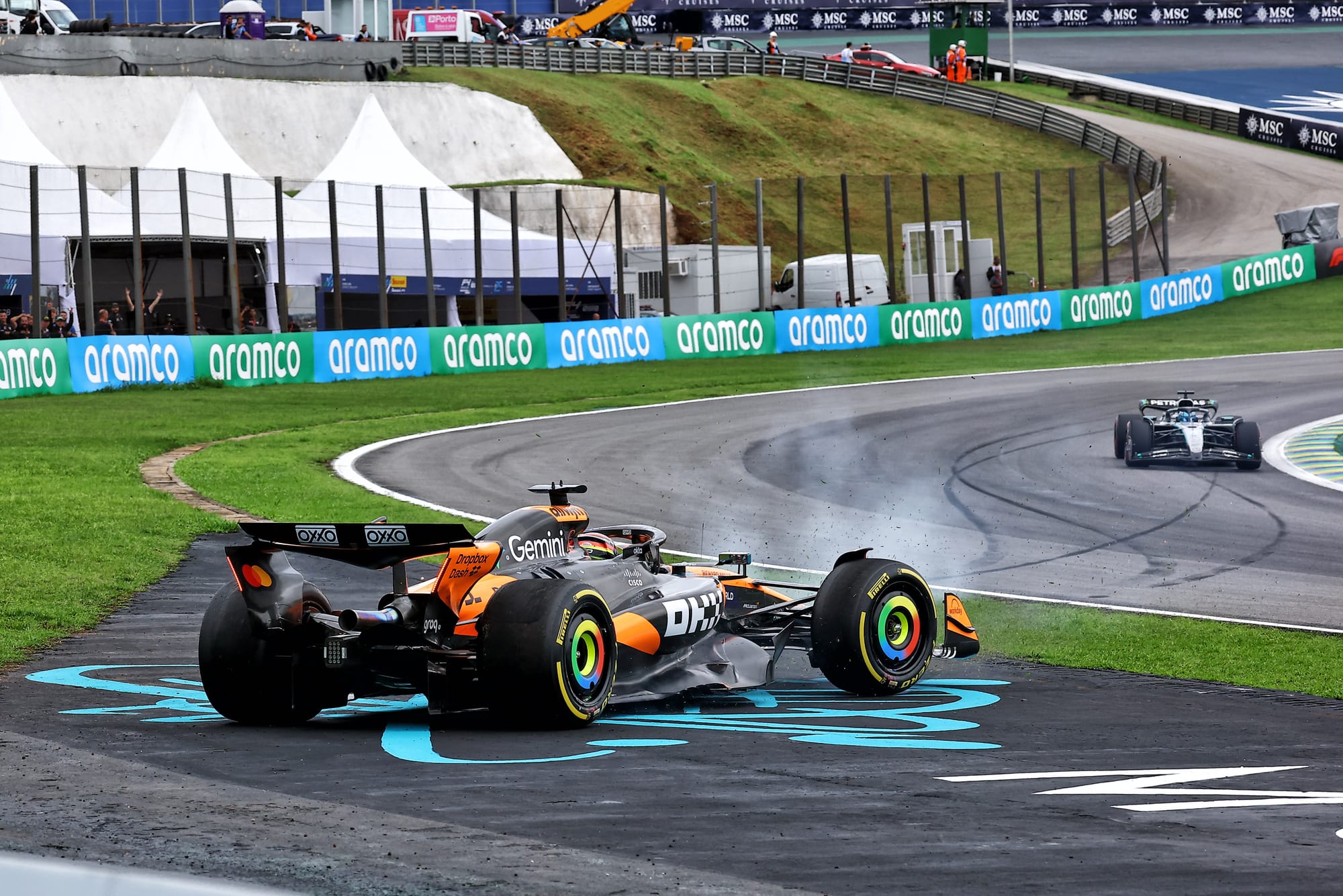 He seems to think this isn’t a repeat of what happened in Austin and Mexico, but a track washed clean by overnight rain, plus a soft tyre not offering the expected high grip, does sound like the sort of recent slippy-slidey phenomenon that McLaren thinks suits Norris and not Piastri, even if it's at the opposite end of the temperature spectrum.
