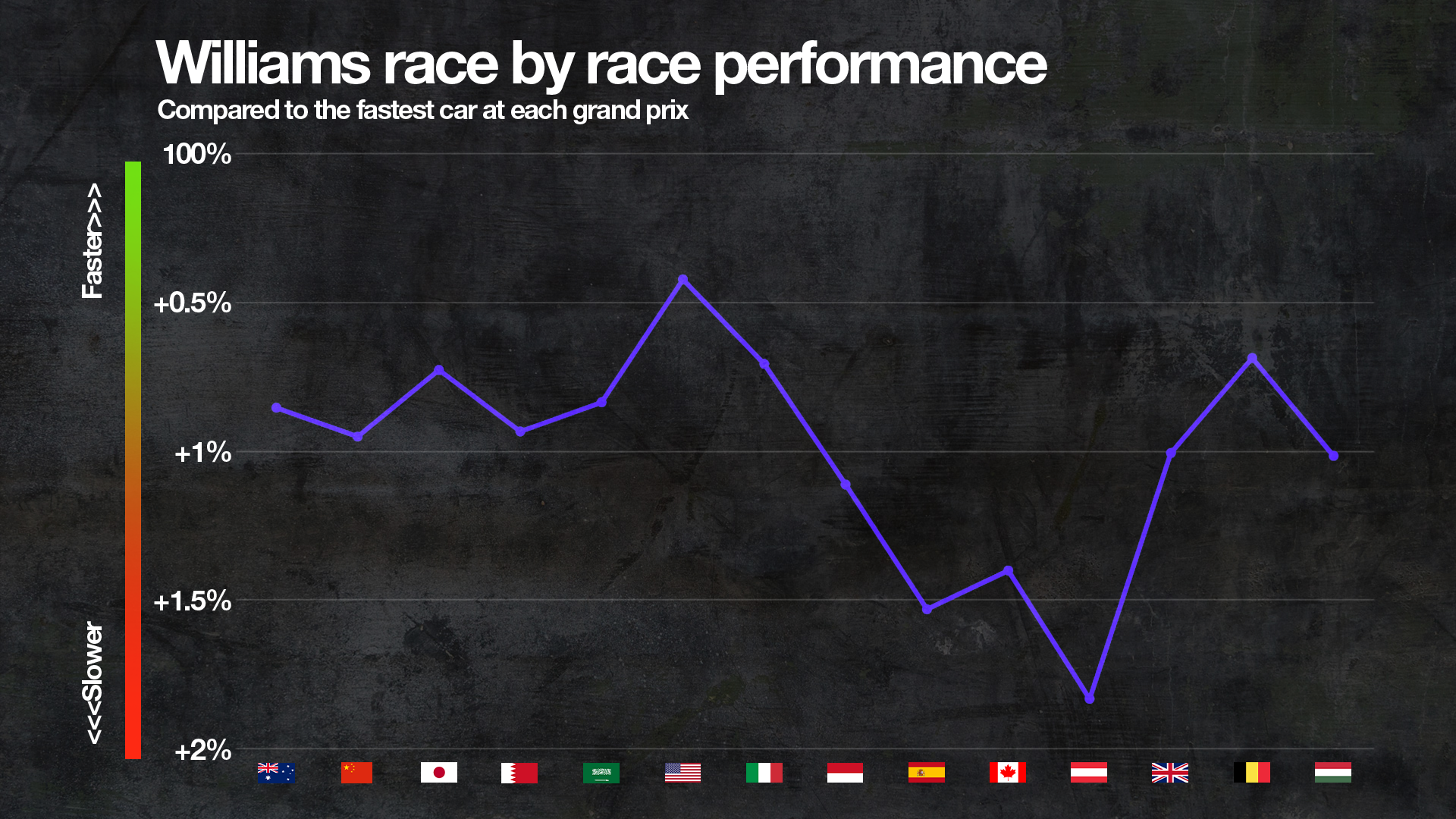 Williams has been, on balance, the class of a midfield F1 fight that's fiercer (and had more points on offer) than at any other point during the ground effect era.