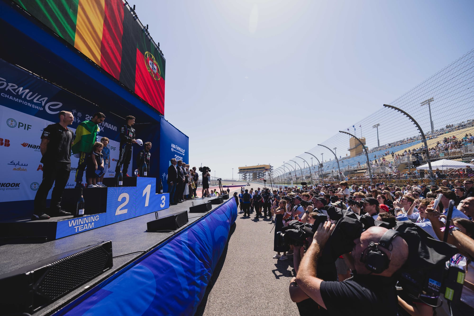 The vast grandstands were filled to some extent with sponsor and partner signage but where it mattered, at the start and the podium, a throng of fans probably numbering around 3000 to 4000 cheered and hollered enthusiastically. Formula E reported a total crowd of 17,000, amid suggestions of 20,000 for last month's NASCAR Cup round there.