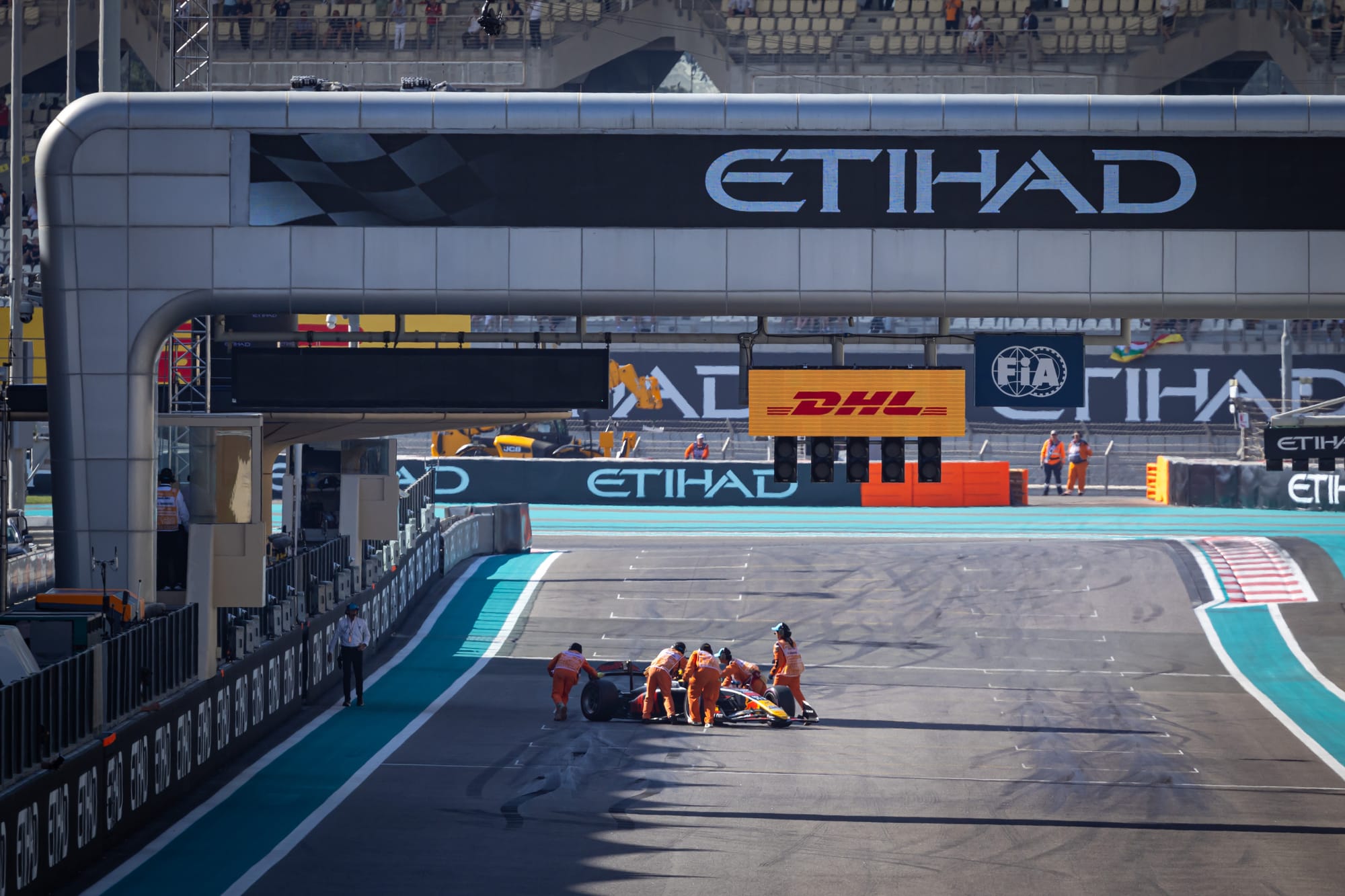 After the sprint in Abu Dhabi, Bortoleto was 4.5 points ahead of Hadjar. Aron was out of the running and that penalty sent him to the pitlane for the feature race start.