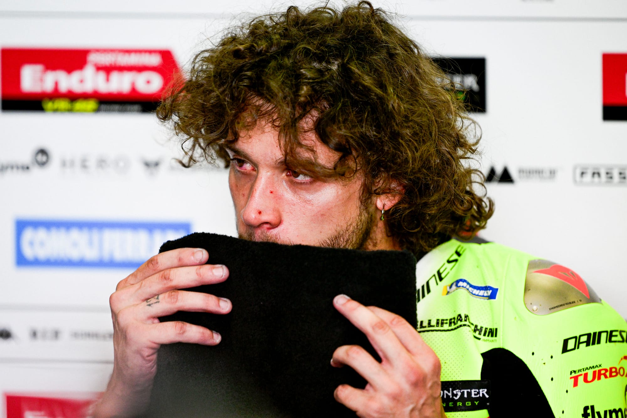 After a fast crash and amid a near total lack of pace, Bezzecchi plopped down into the chair in the media centre with a look that made asking questions feel like twisting the knife.