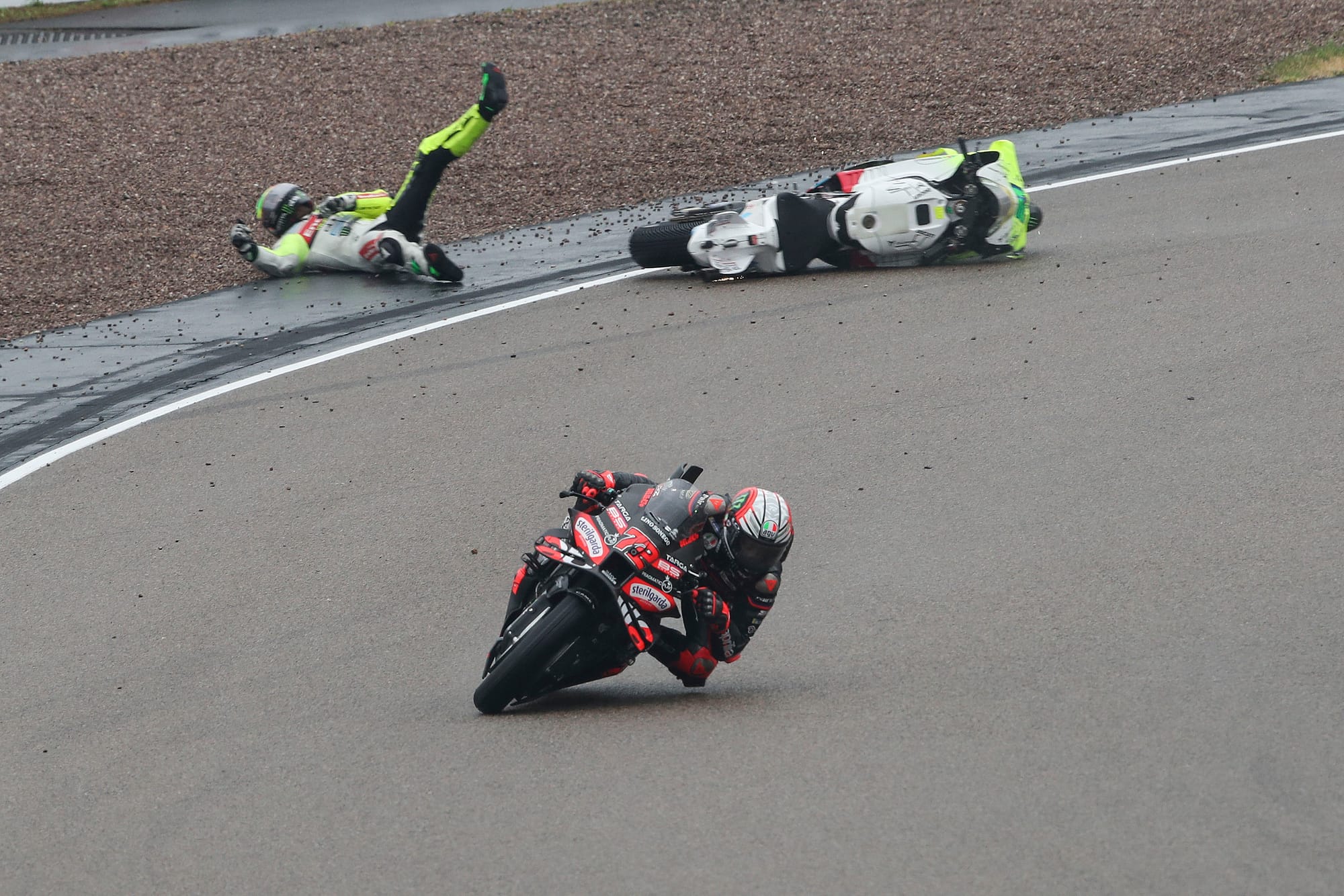 He was eventually taken to the medical centre for a check-up and diagnosed with a severe contusion to the left collarbone. Morbidelli will be transferred to Chemnitz Hospital for further evaluation.
