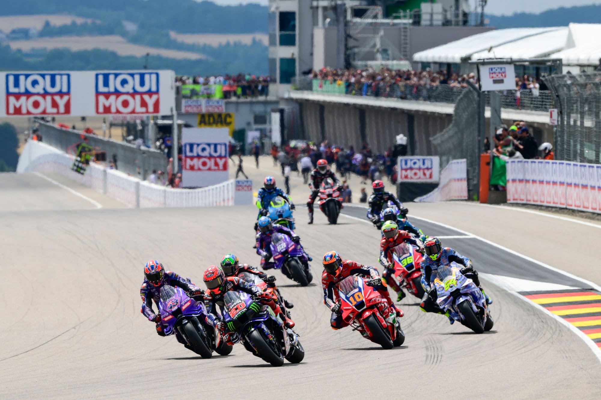 Alex Marquez, who had fractured his hand two weeks ago at Assen, held firm in second, with Pecco Bagnaia never really close enough to attack and simply rounding out a familiar Ducati 1-2-3.