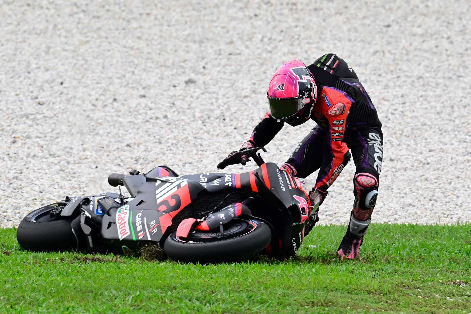 “Here was the same. We retried it because it’s been a lot of races without trying it and we thought that here, for the braking of corner one and the last corner, you can have a bit better support, but when I release the front brake, I feel movement and instability, the bike doesn’t turn, and I crashed for the same reason.