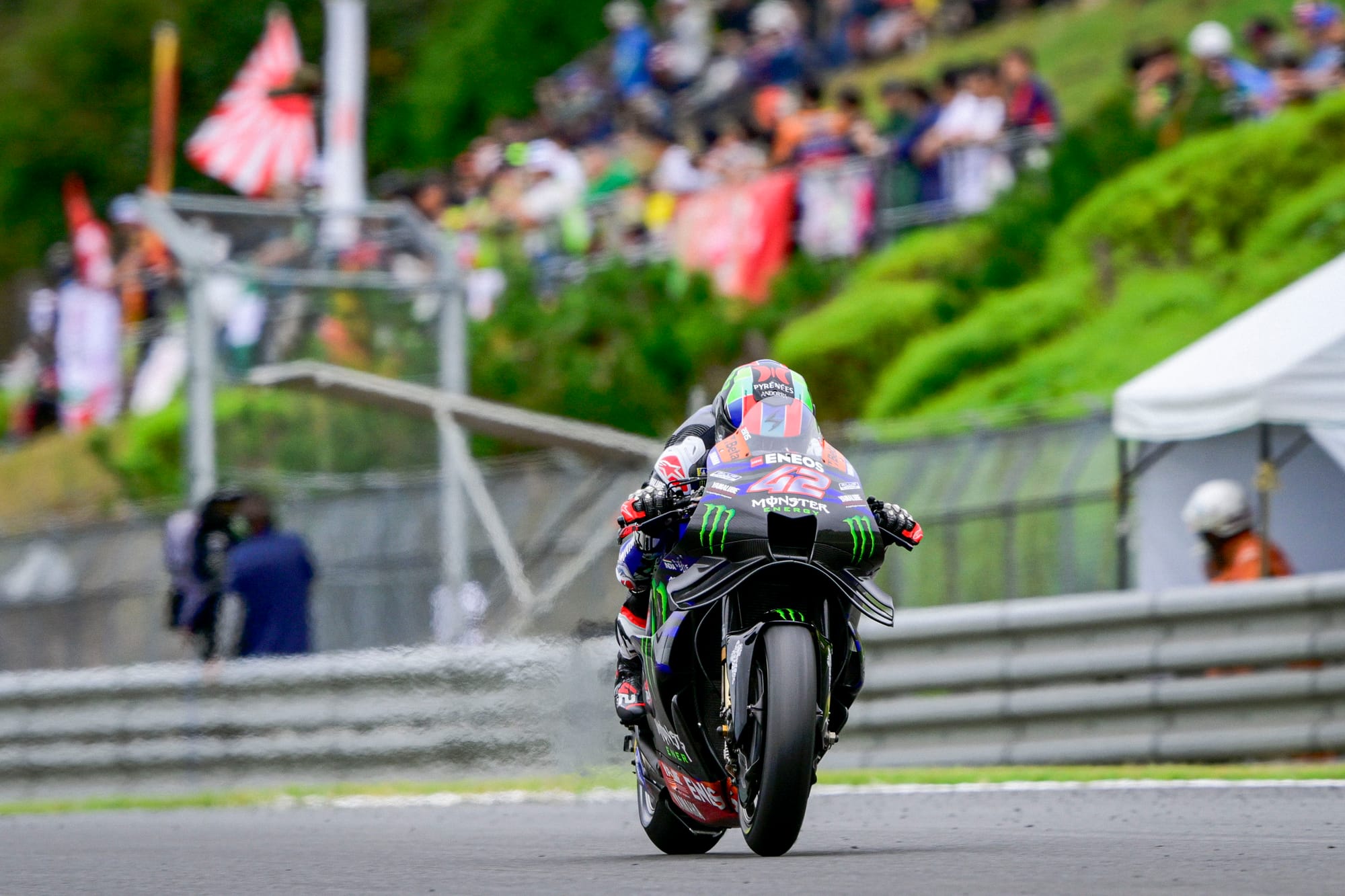 Rins was likewise unimpressed with the M1 at Motegi: "zero edge grip", "massive spin" on the throttle, front moving into the corner, the rear kicking up so much he felt it spent more than three seconds of laptime in the air.